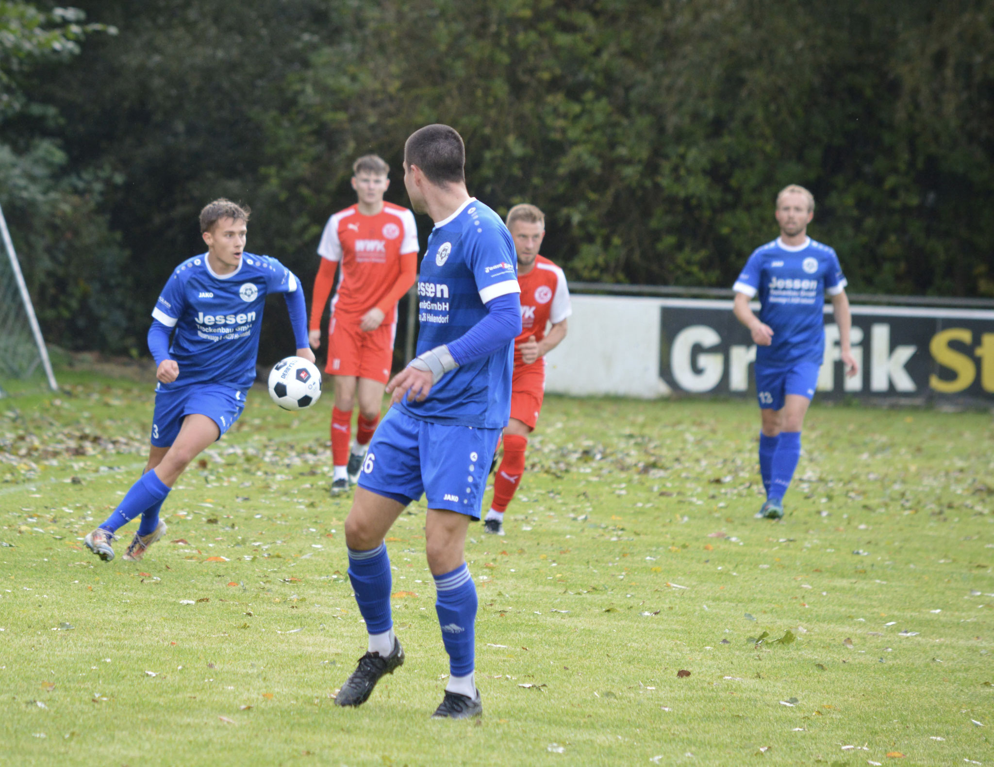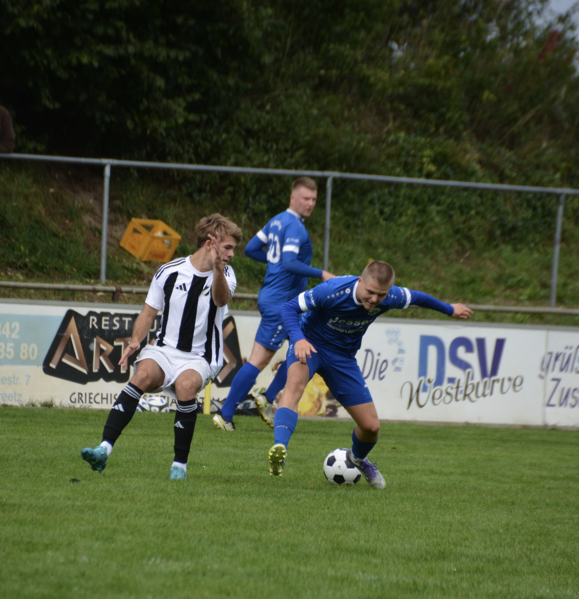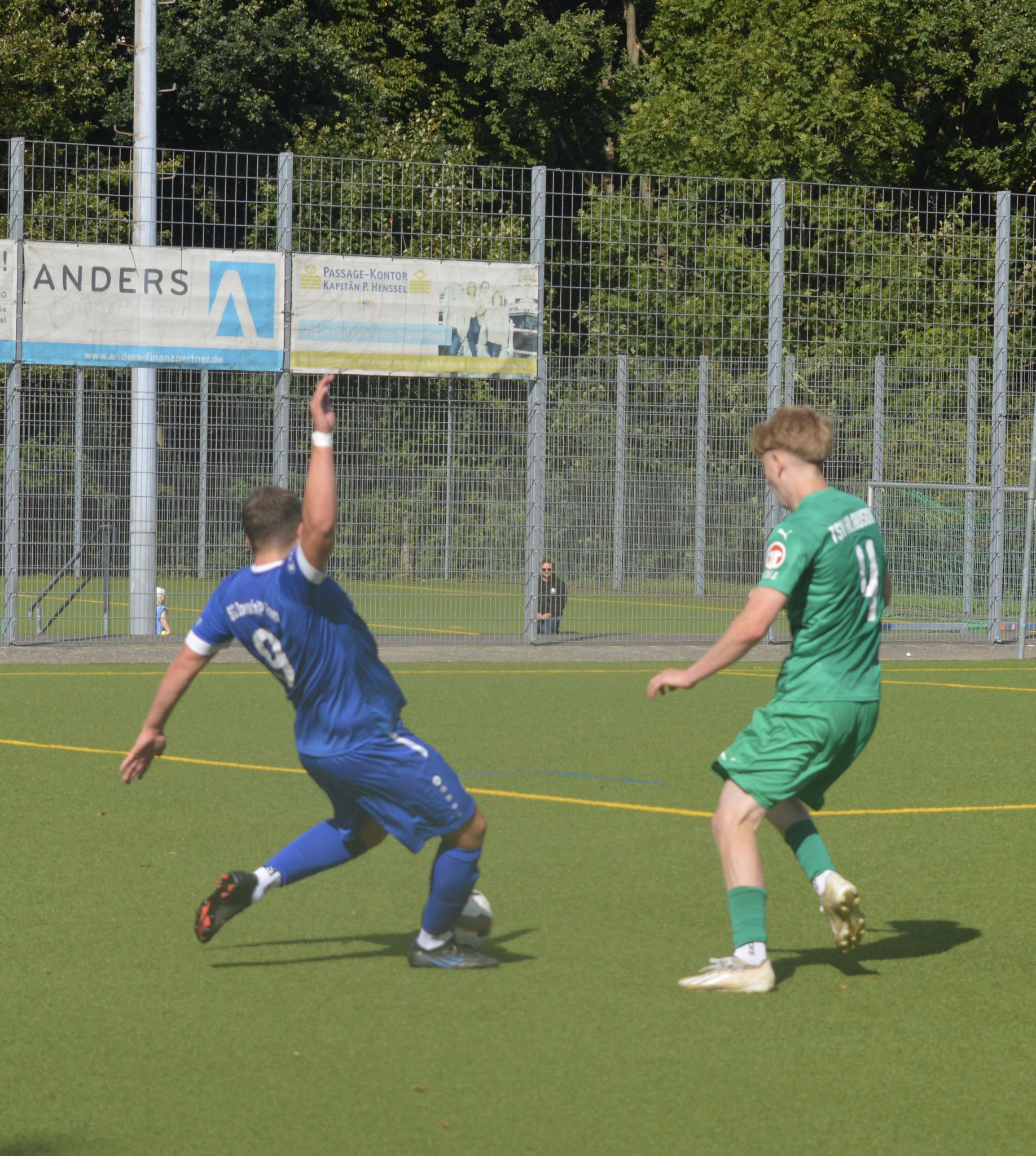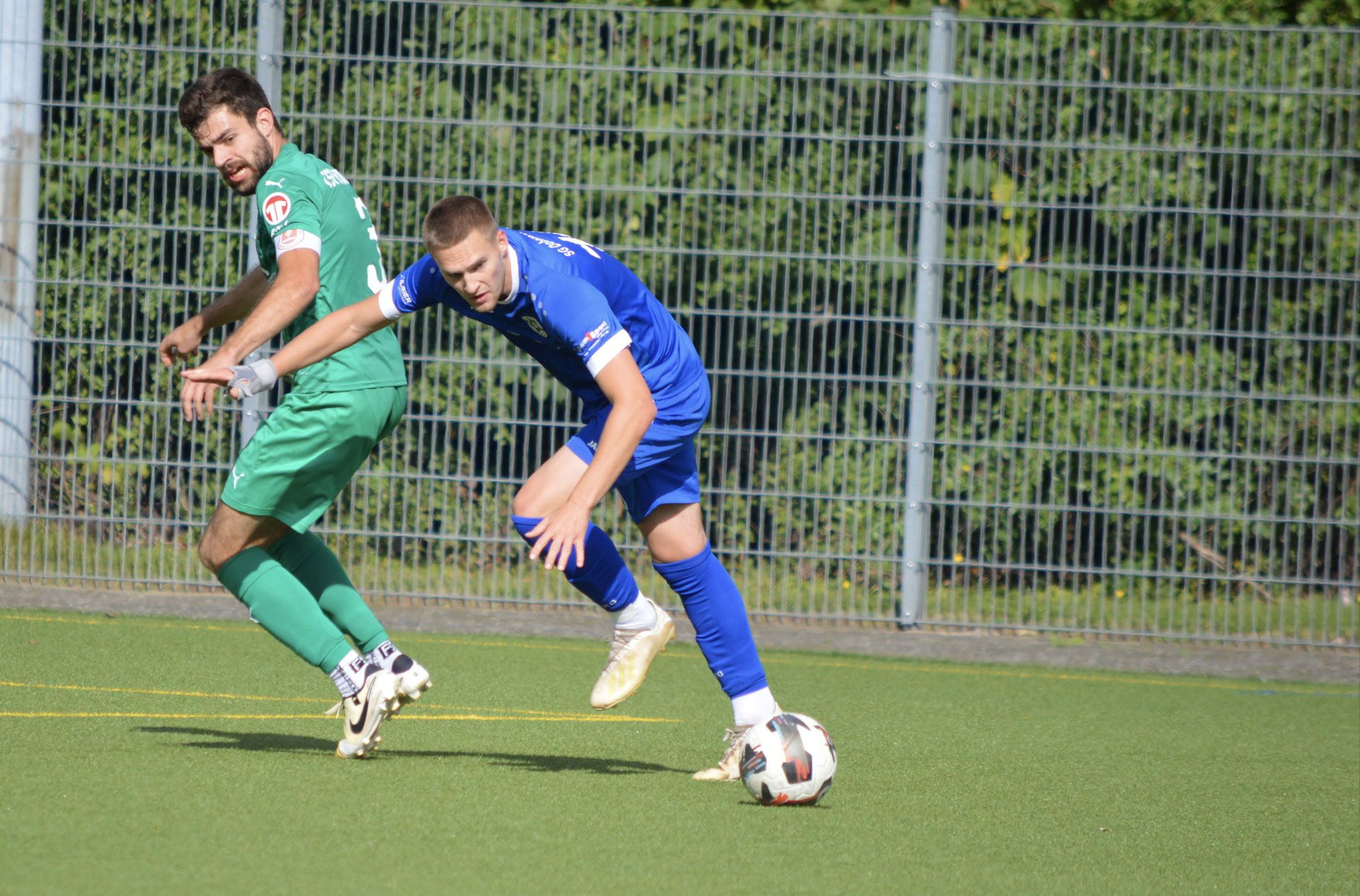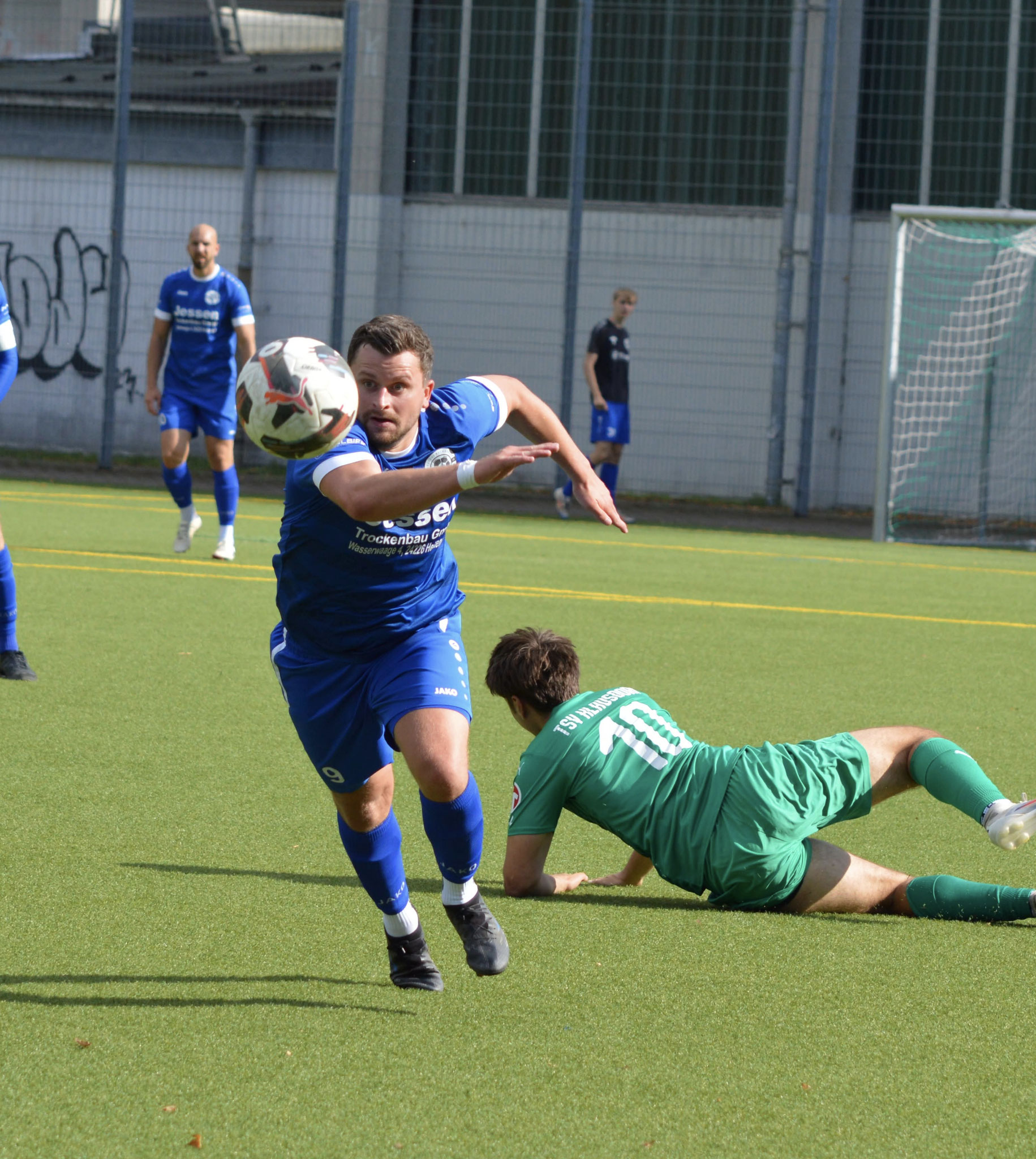 Die Gäste, die ausschließlich durch lange Bälle agierten, hatten in der ersten Halbzeit das ein oder andere Mal den Ausgleich auf dem Fuß.