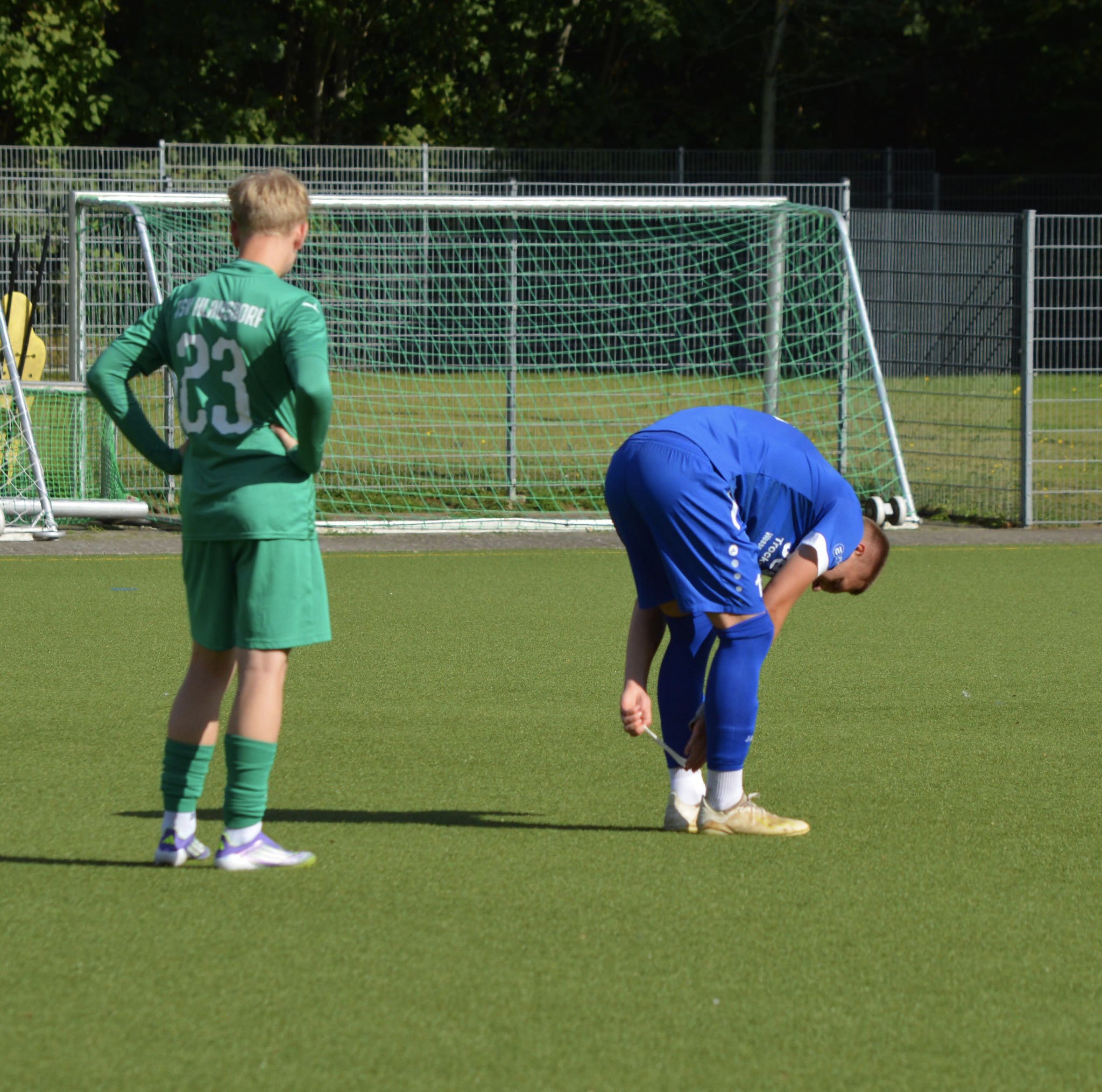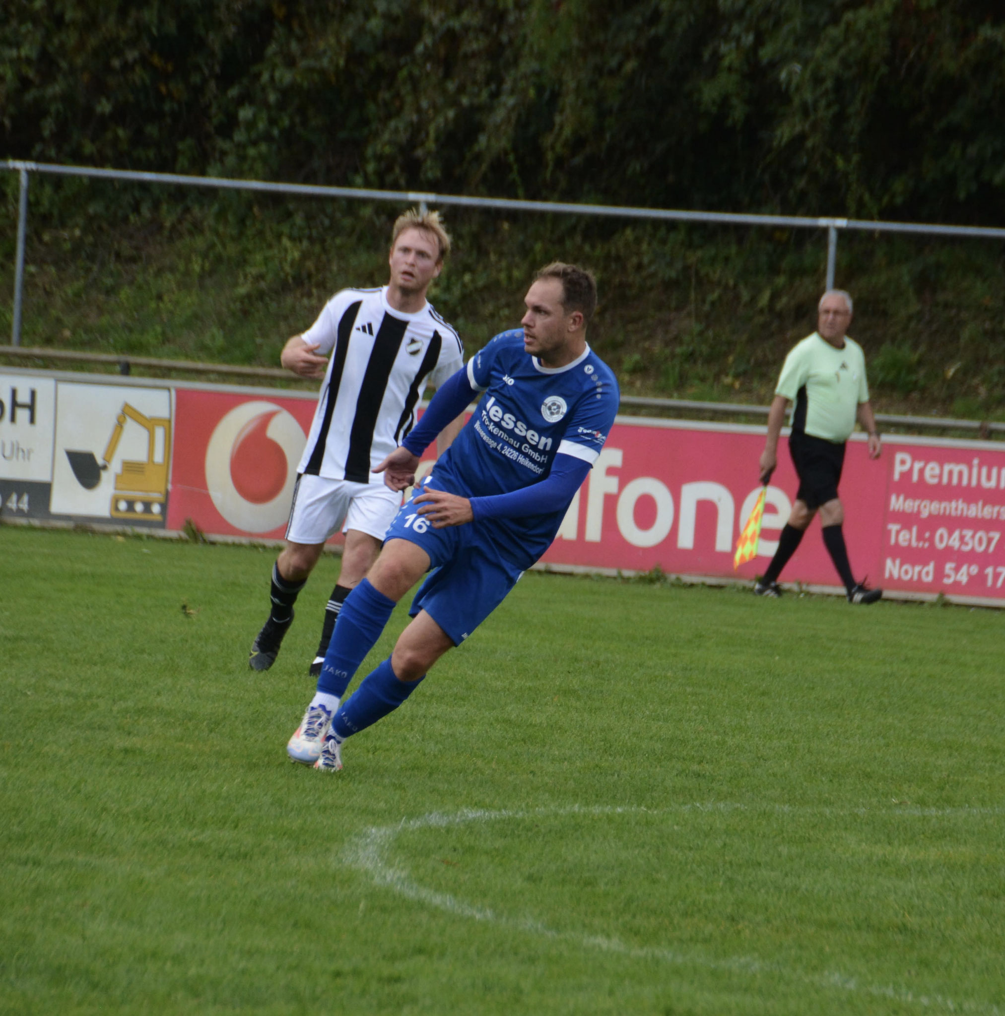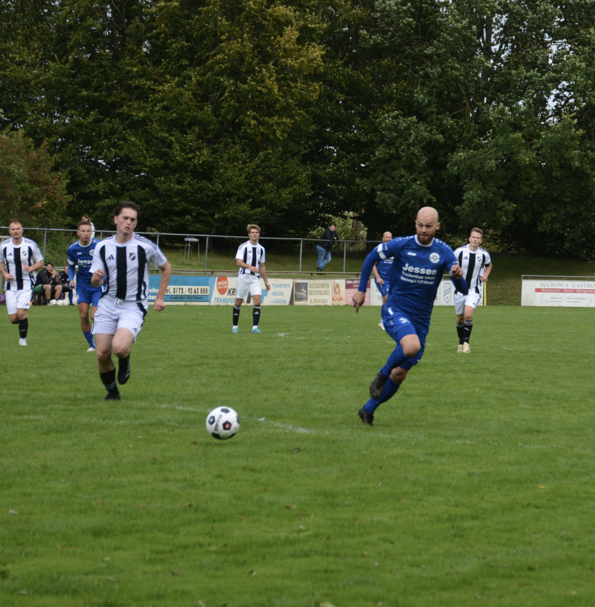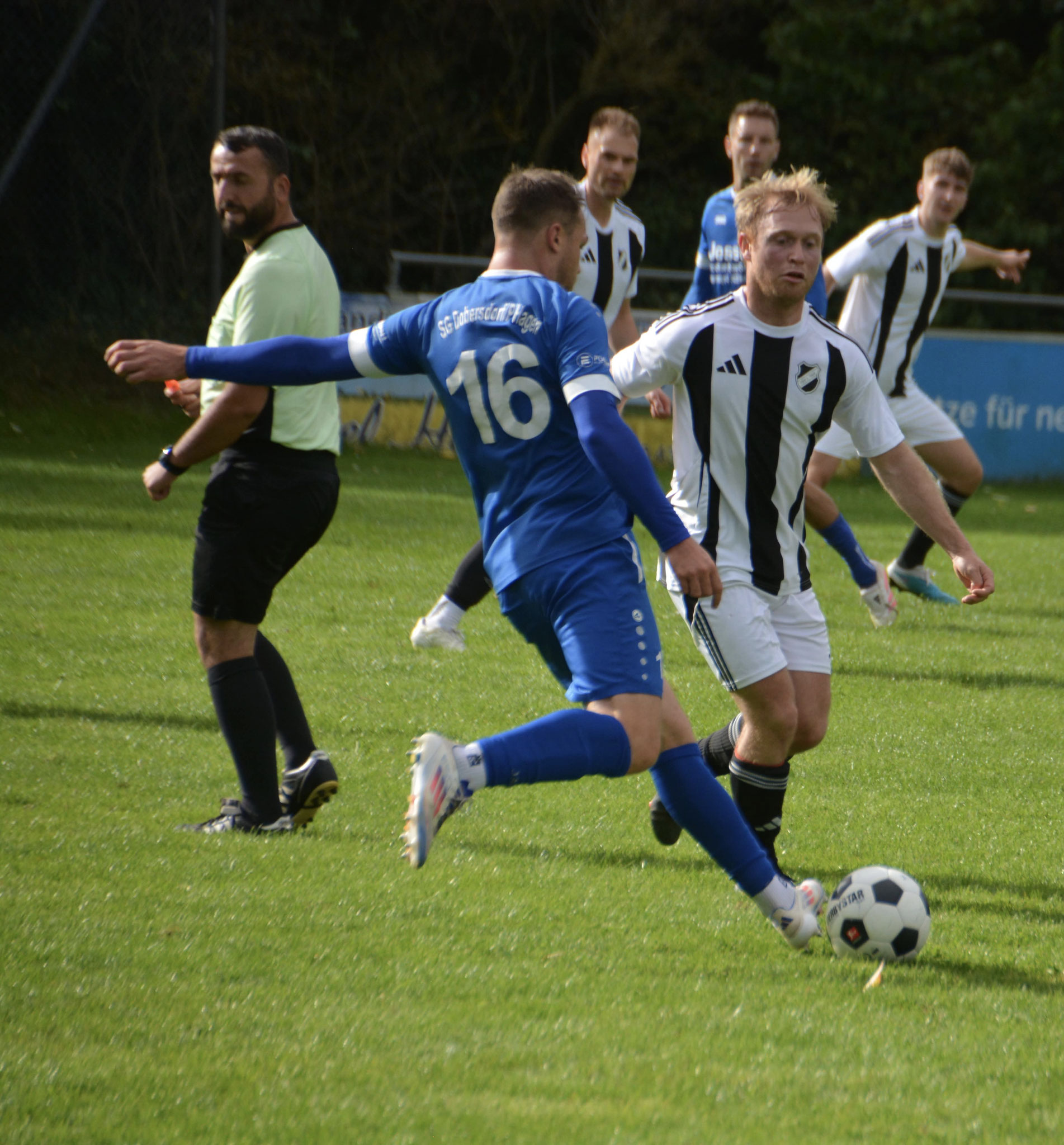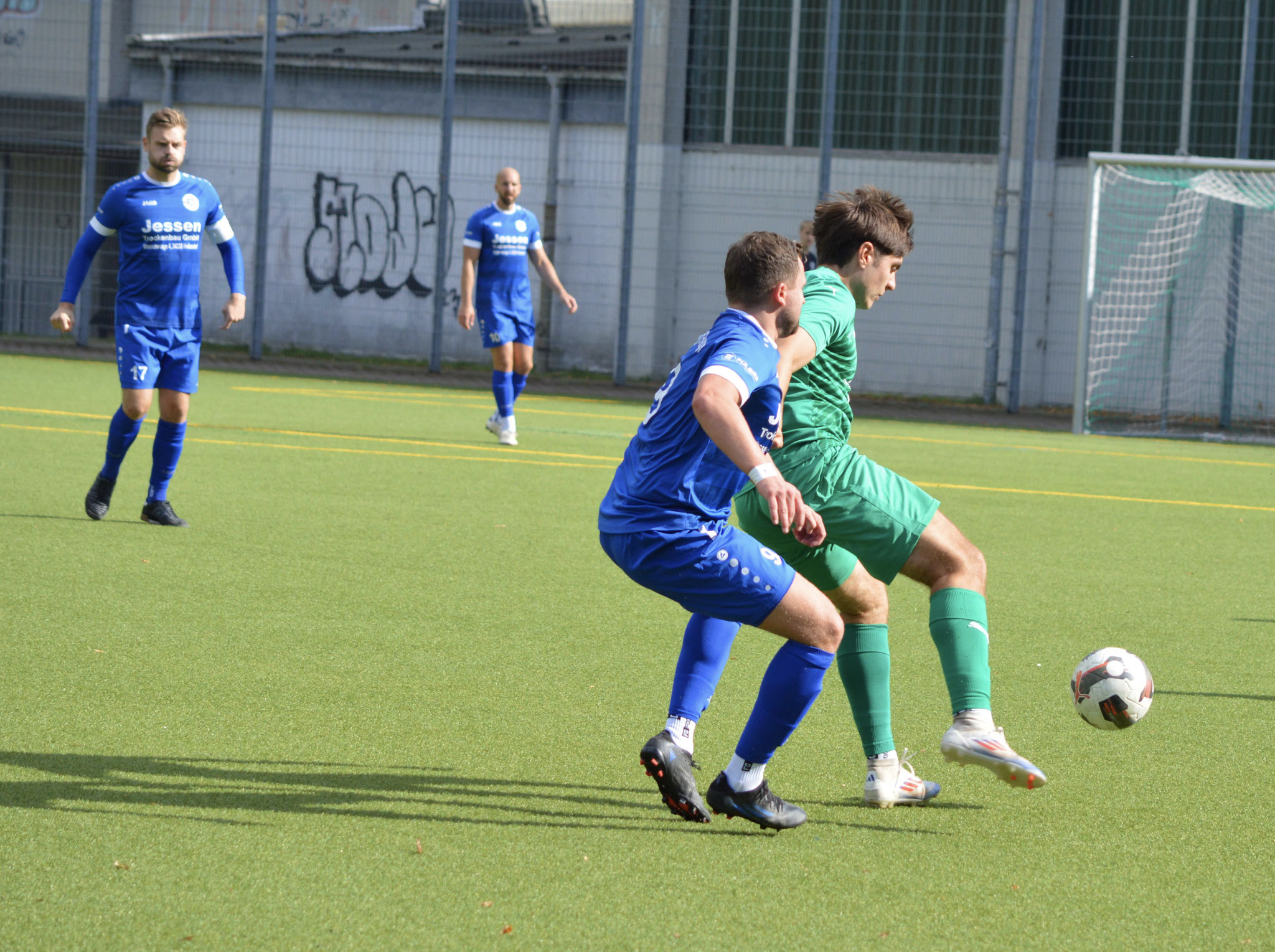Die Gäste, die ausschließlich durch lange Bälle agierten, hatten in der ersten Halbzeit das ein oder andere Mal den Ausgleich auf dem Fuß.