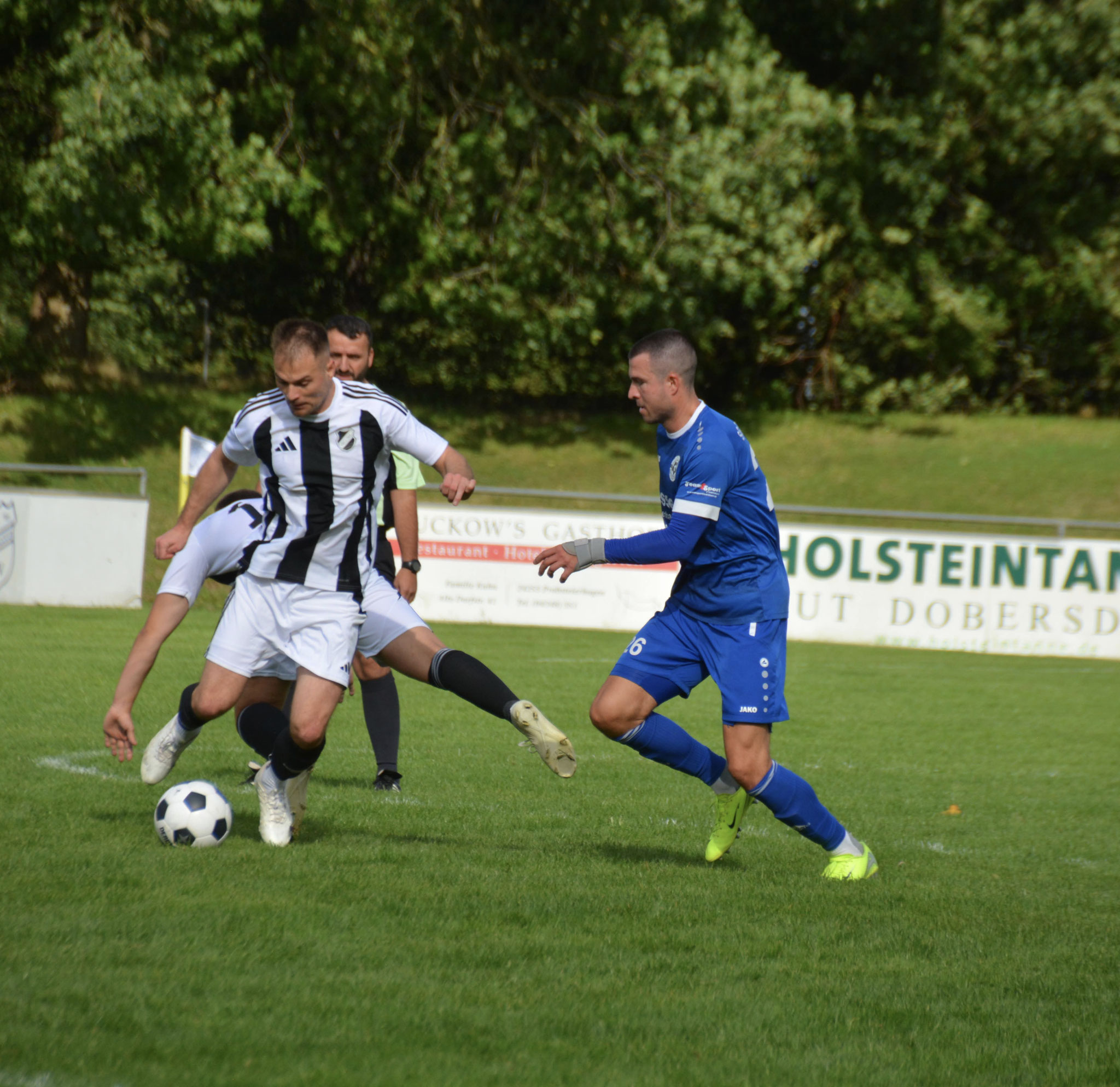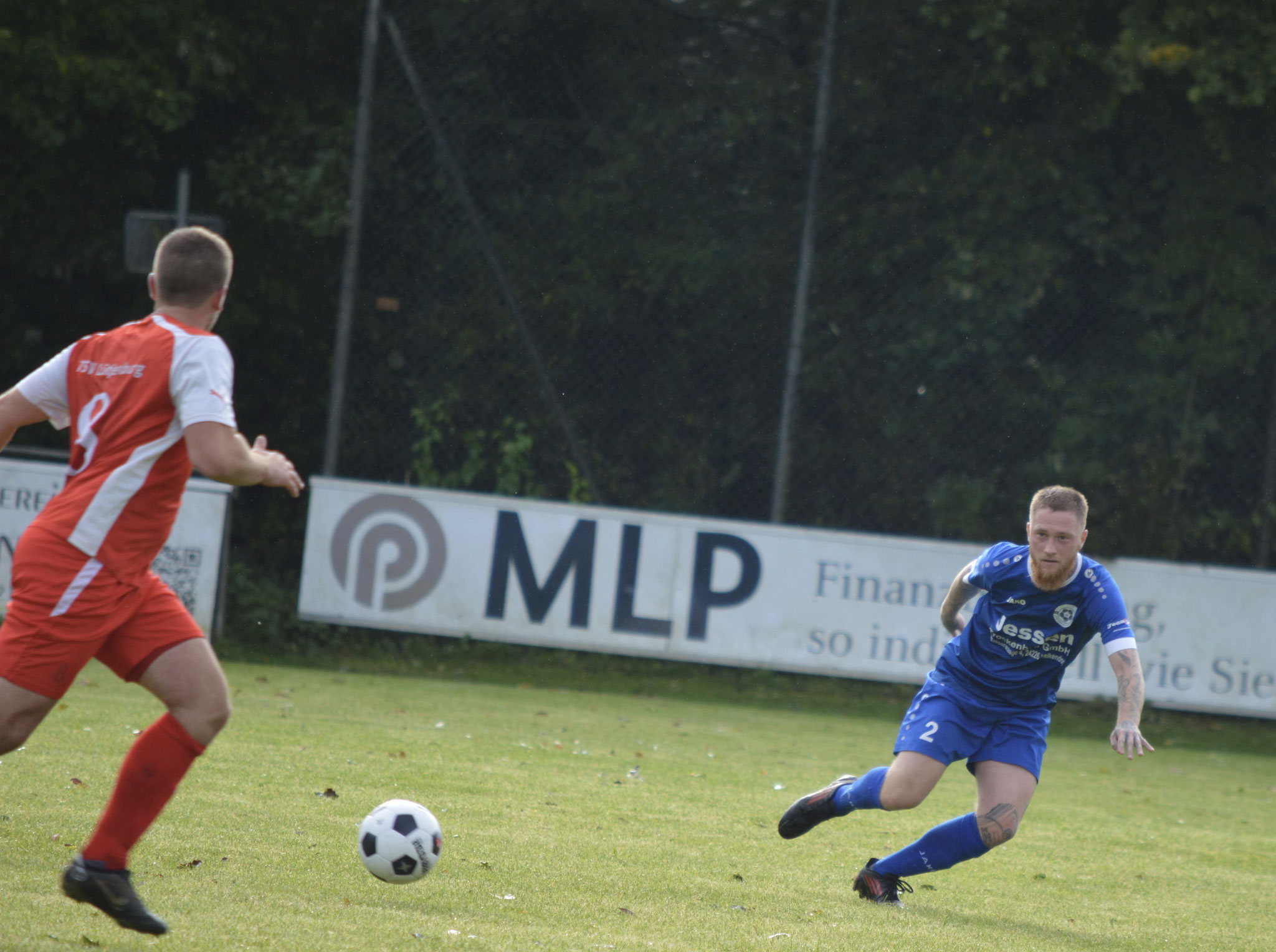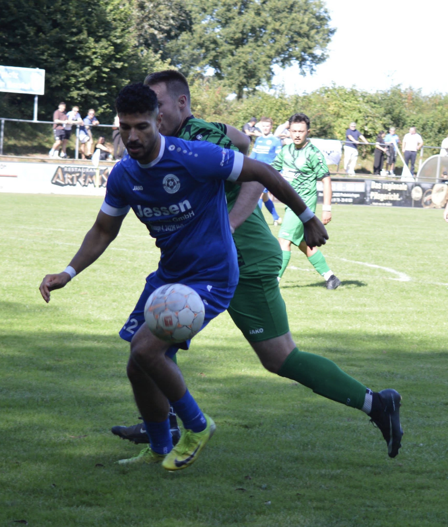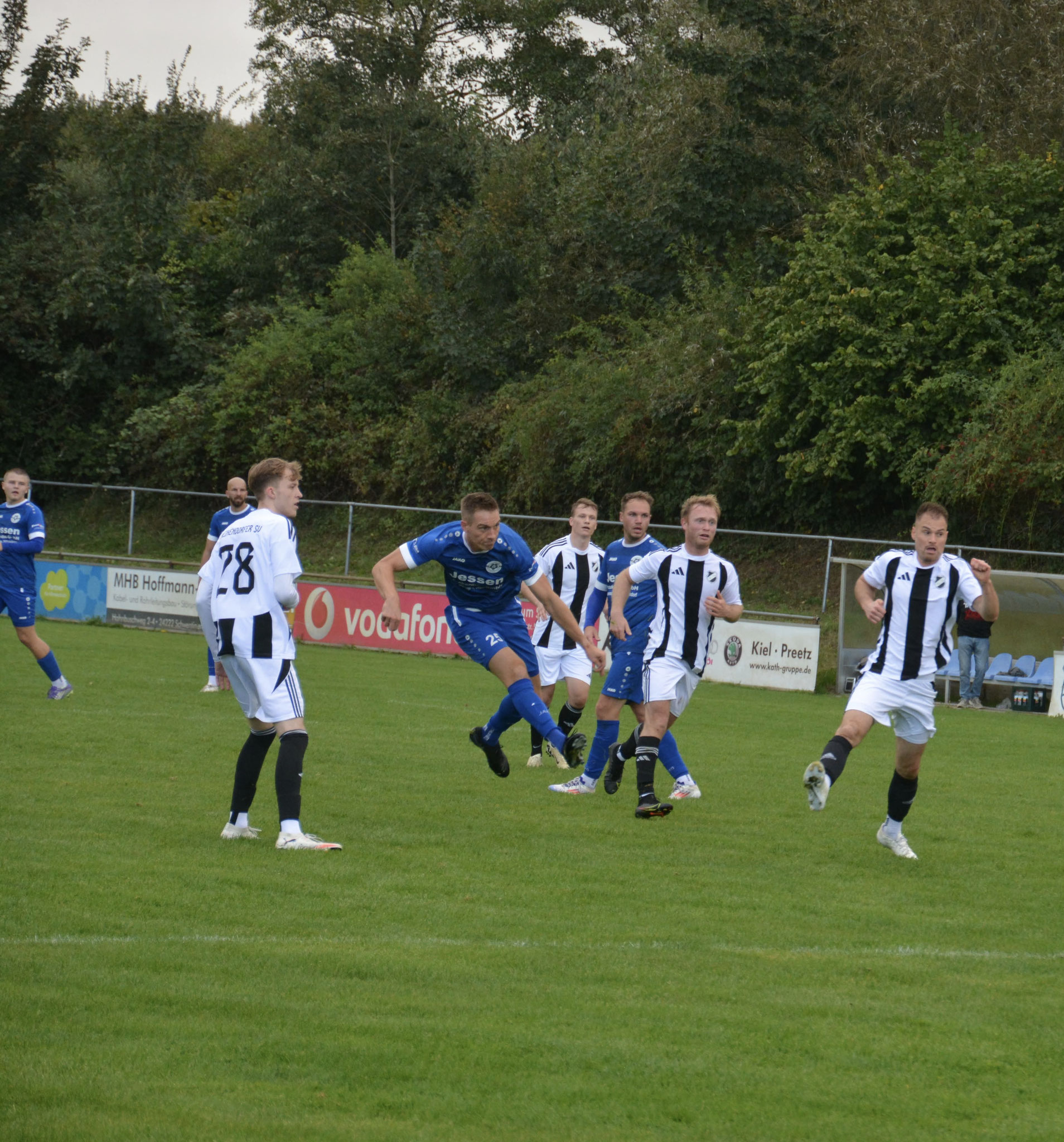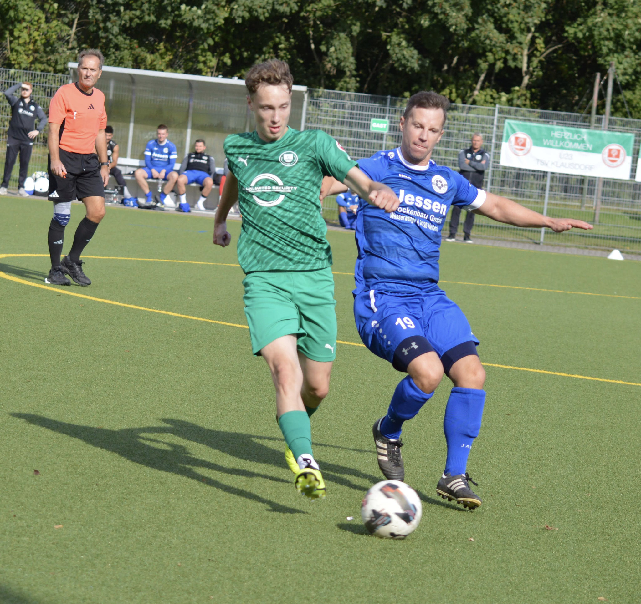 Die Gäste, die ausschließlich durch lange Bälle agierten, hatten in der ersten Halbzeit das ein oder andere Mal den Ausgleich auf dem Fuß.