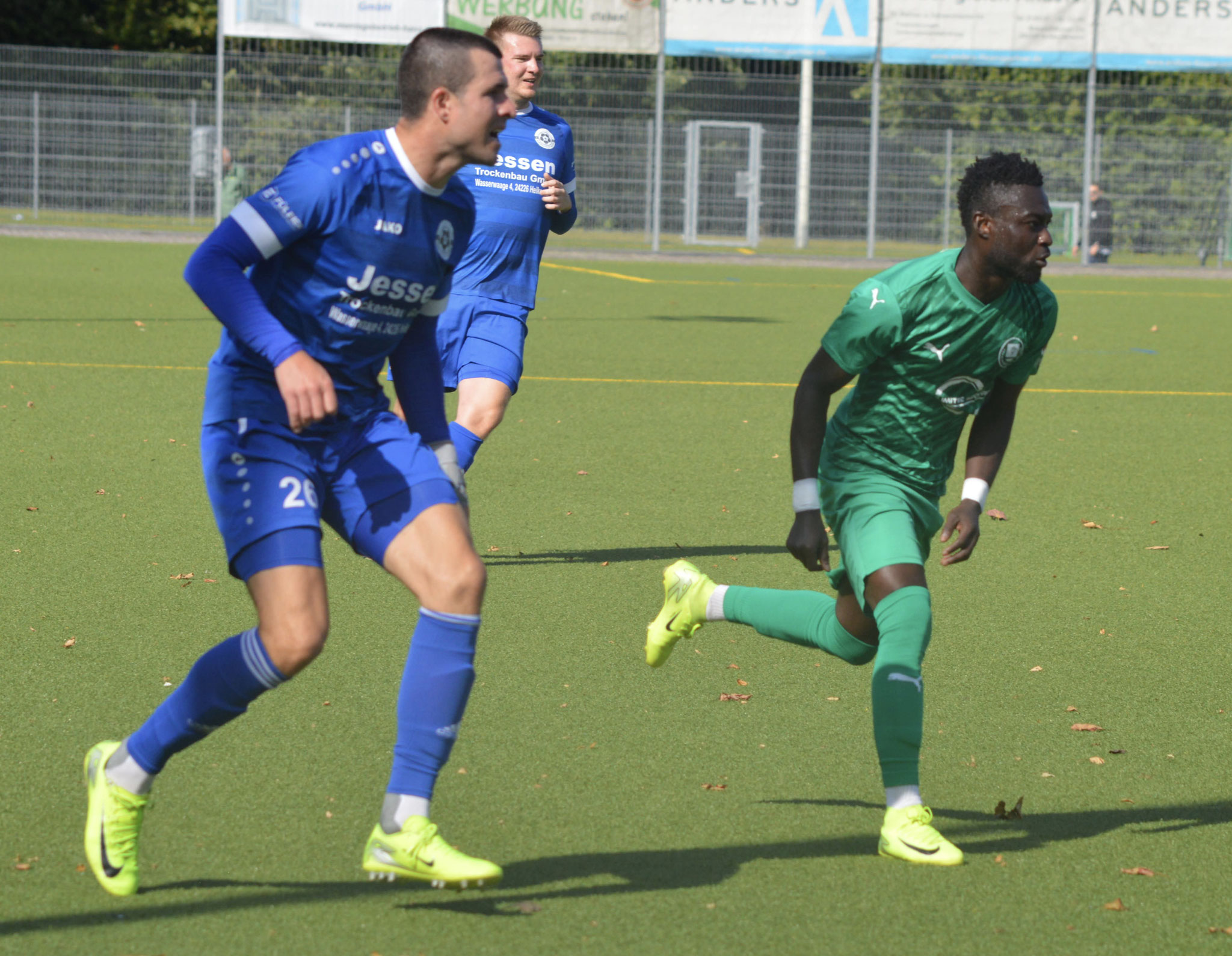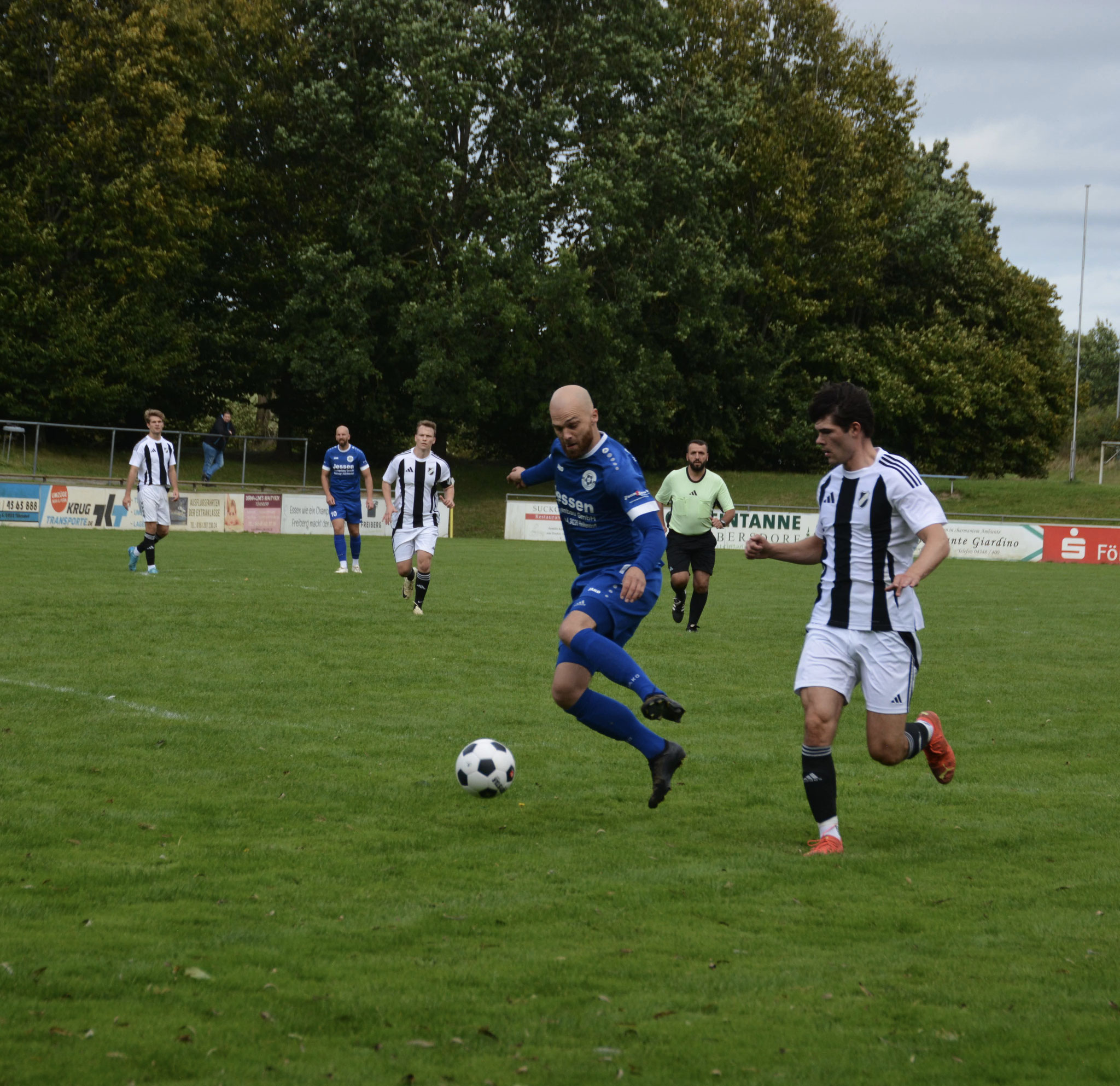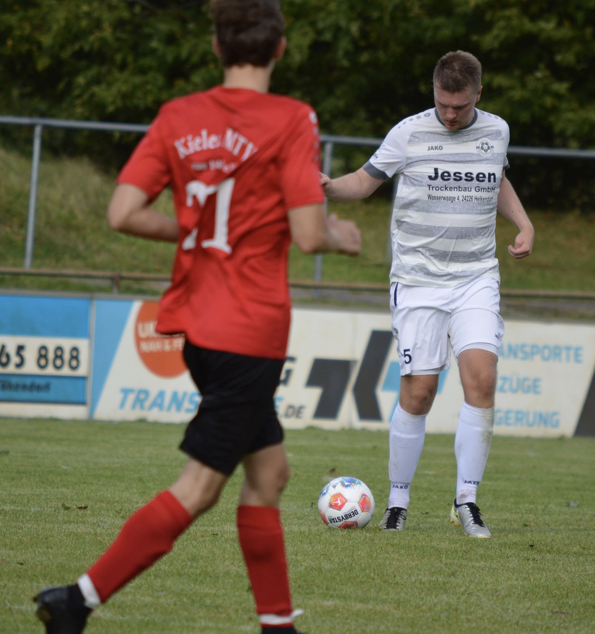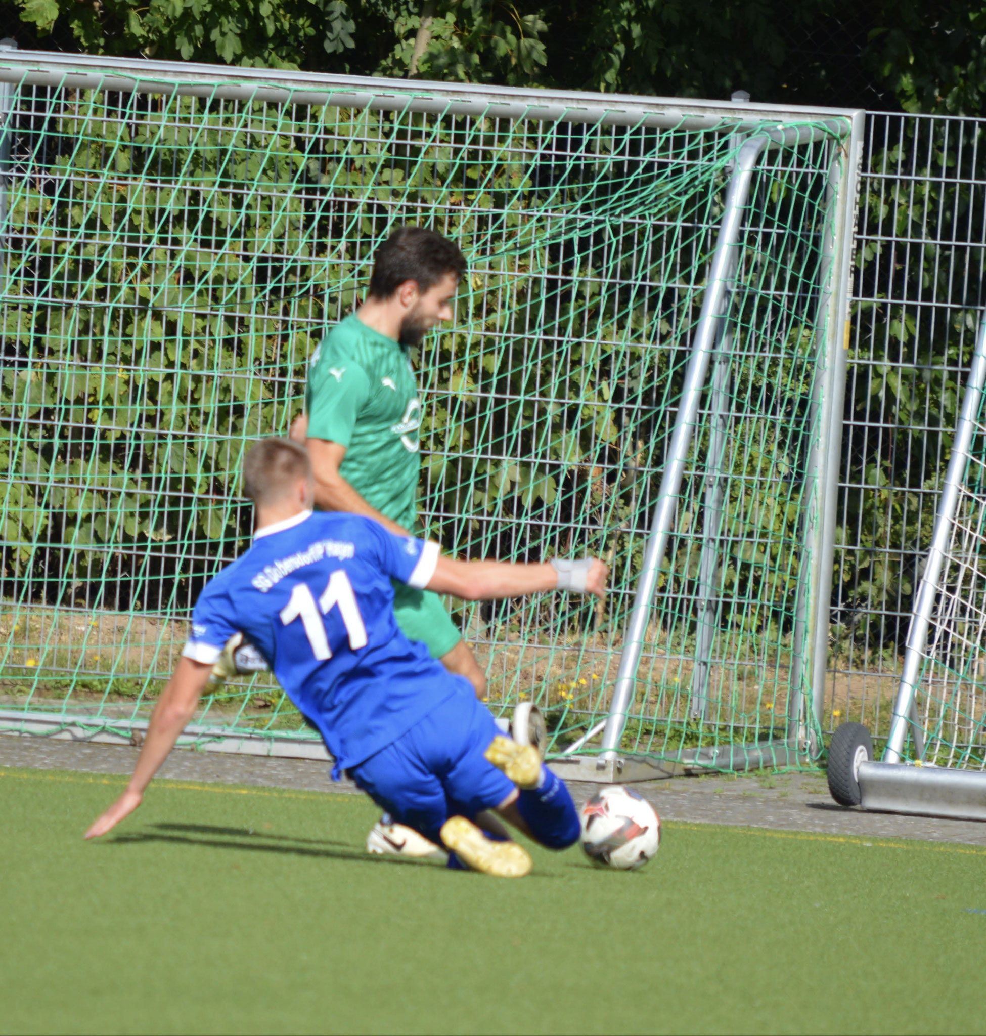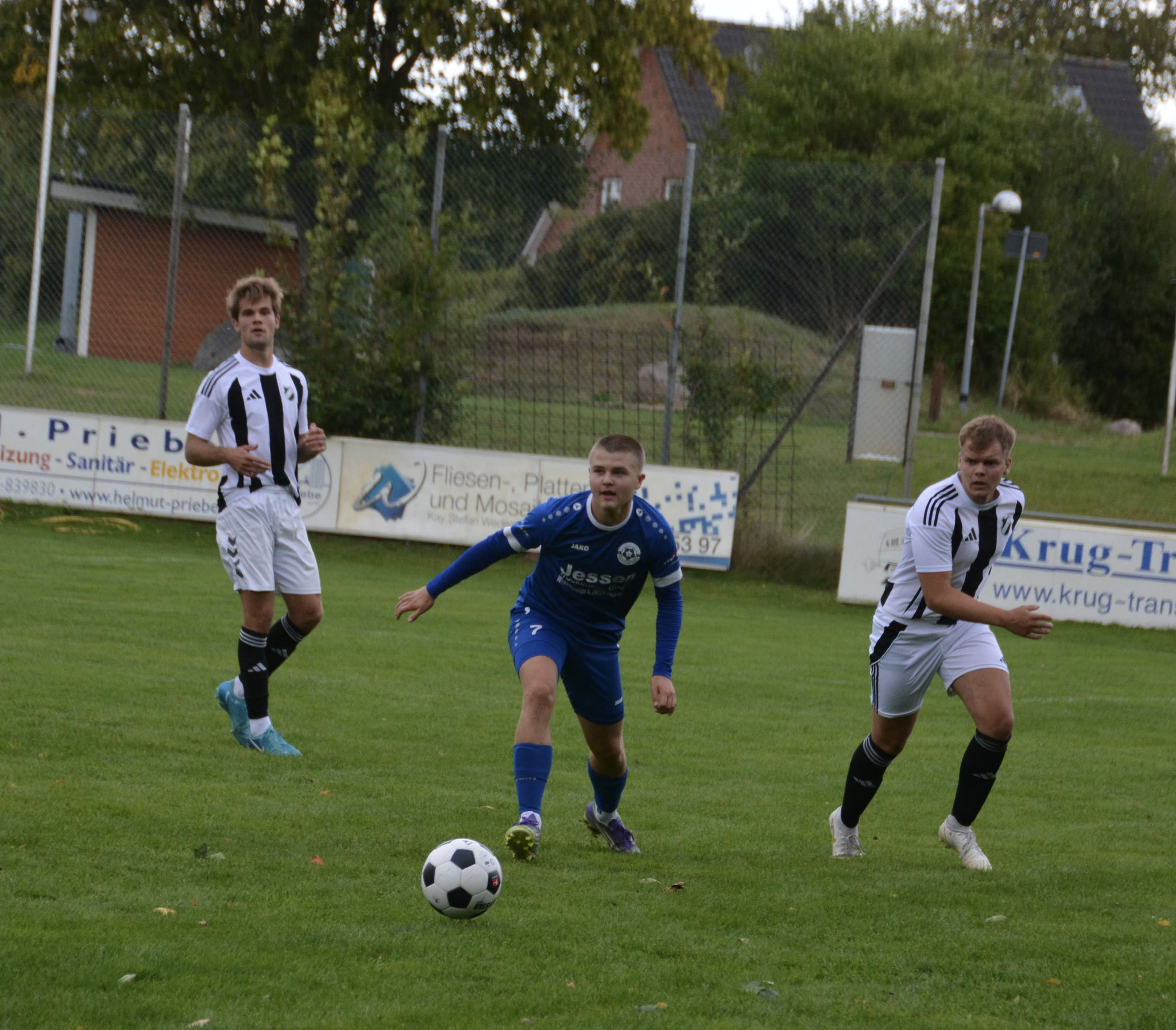 Die Gäste, die ausschließlich durch lange Bälle agierten, hatten in der ersten Halbzeit das ein oder andere Mal den Ausgleich auf dem Fuß.