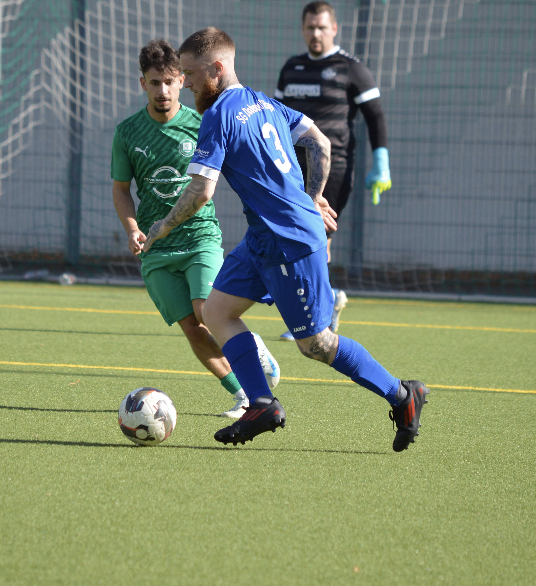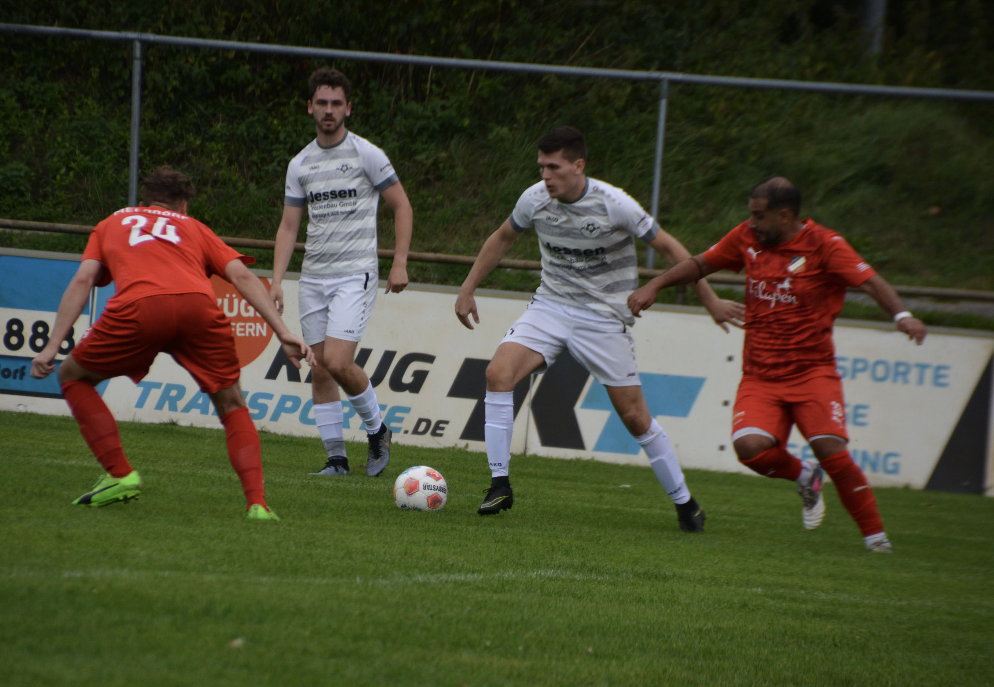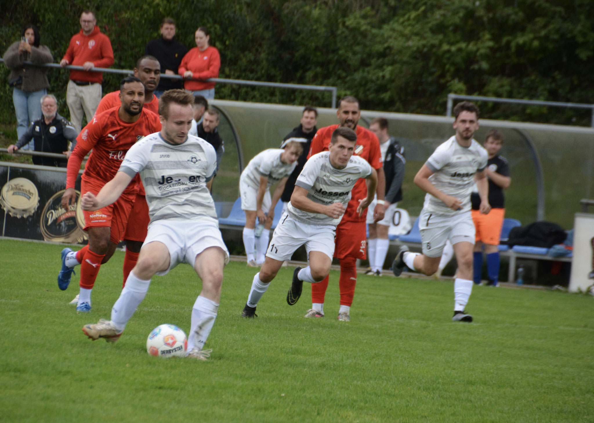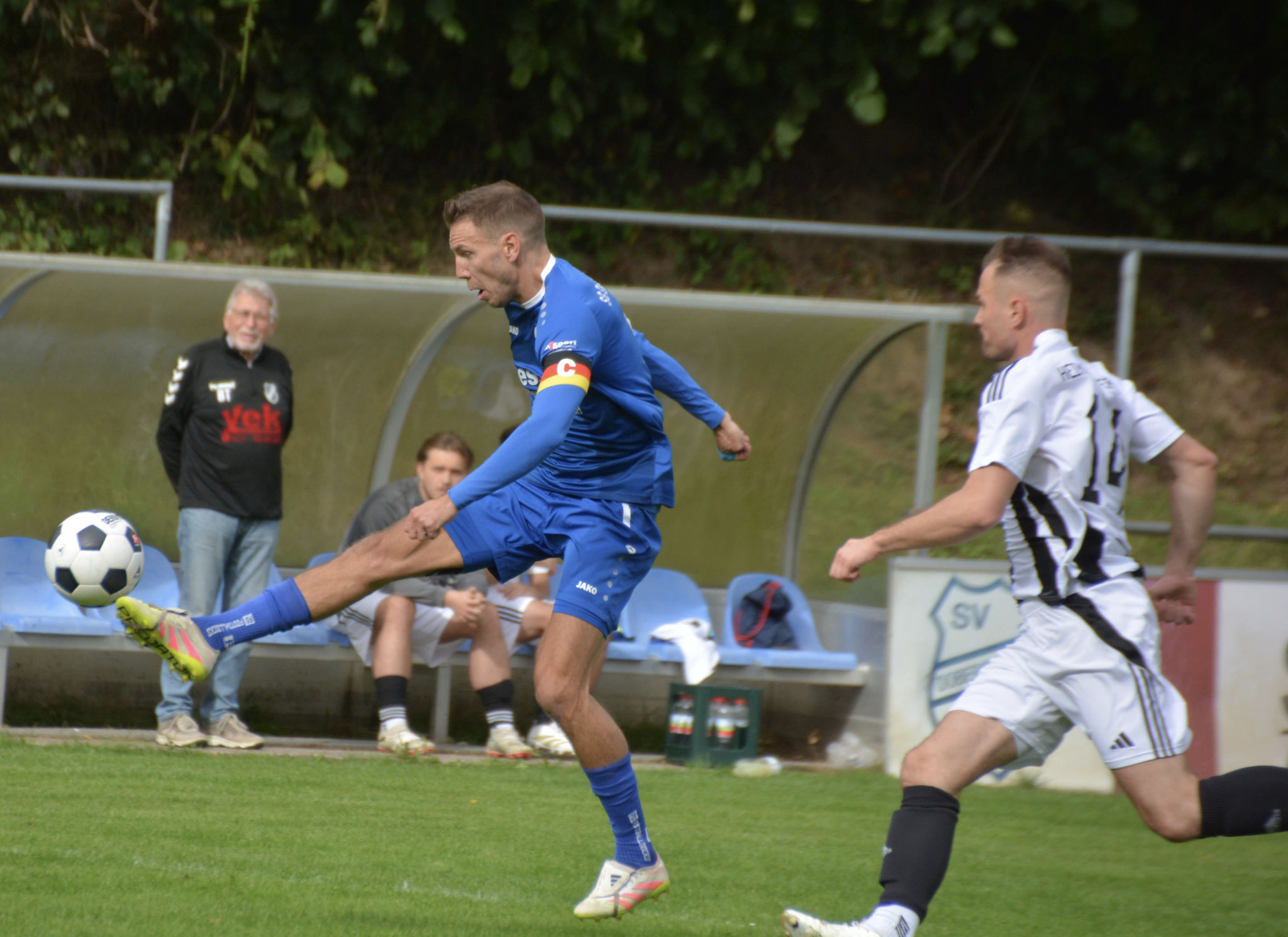 Die Gäste, die ausschließlich durch lange Bälle agierten, hatten in der ersten Halbzeit das ein oder andere Mal den Ausgleich auf dem Fuß.