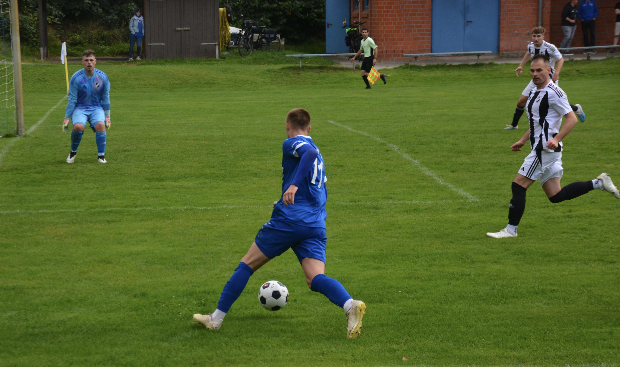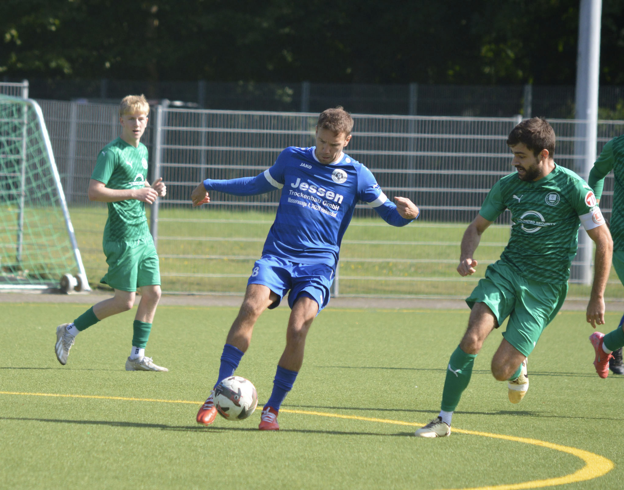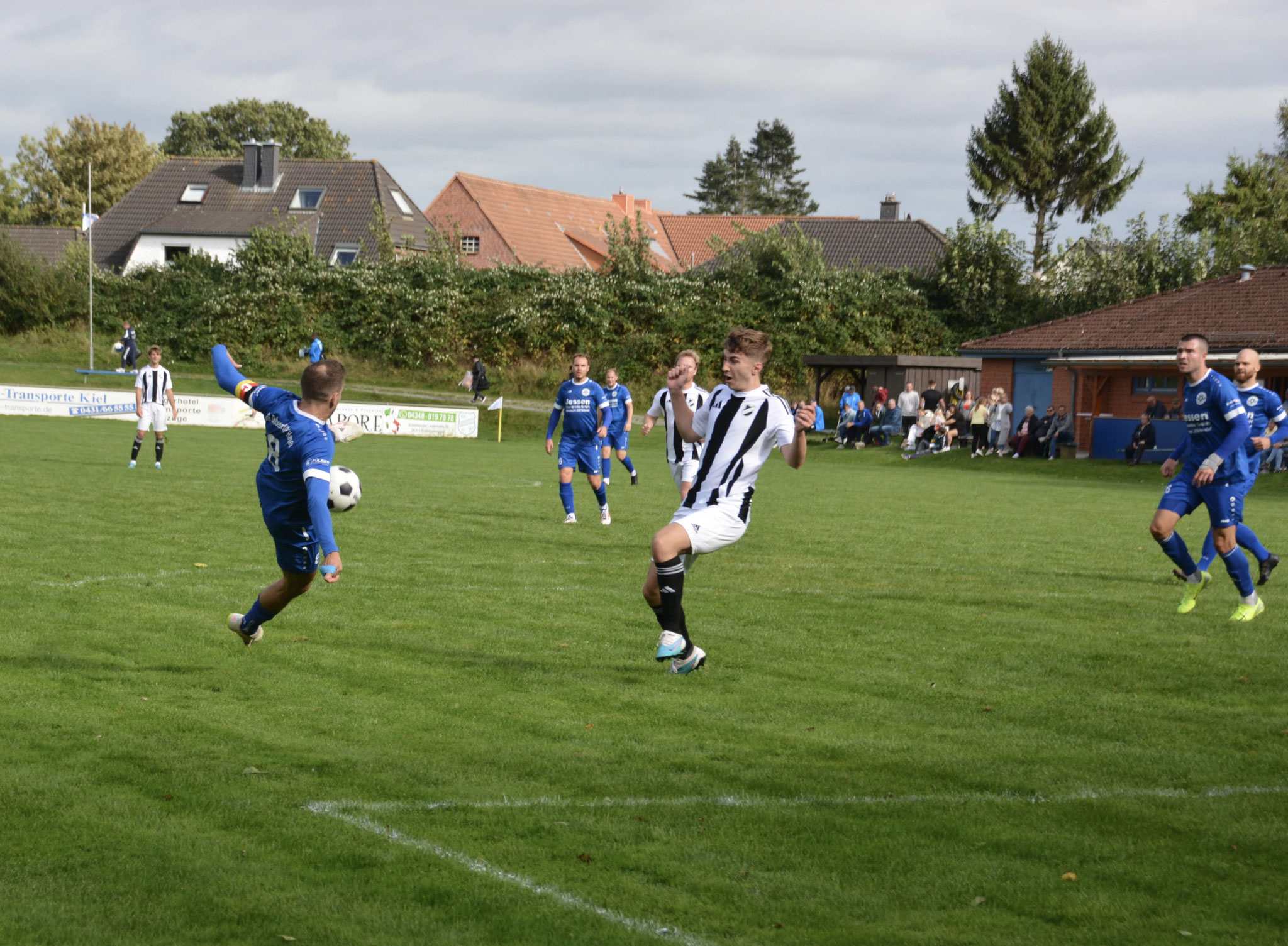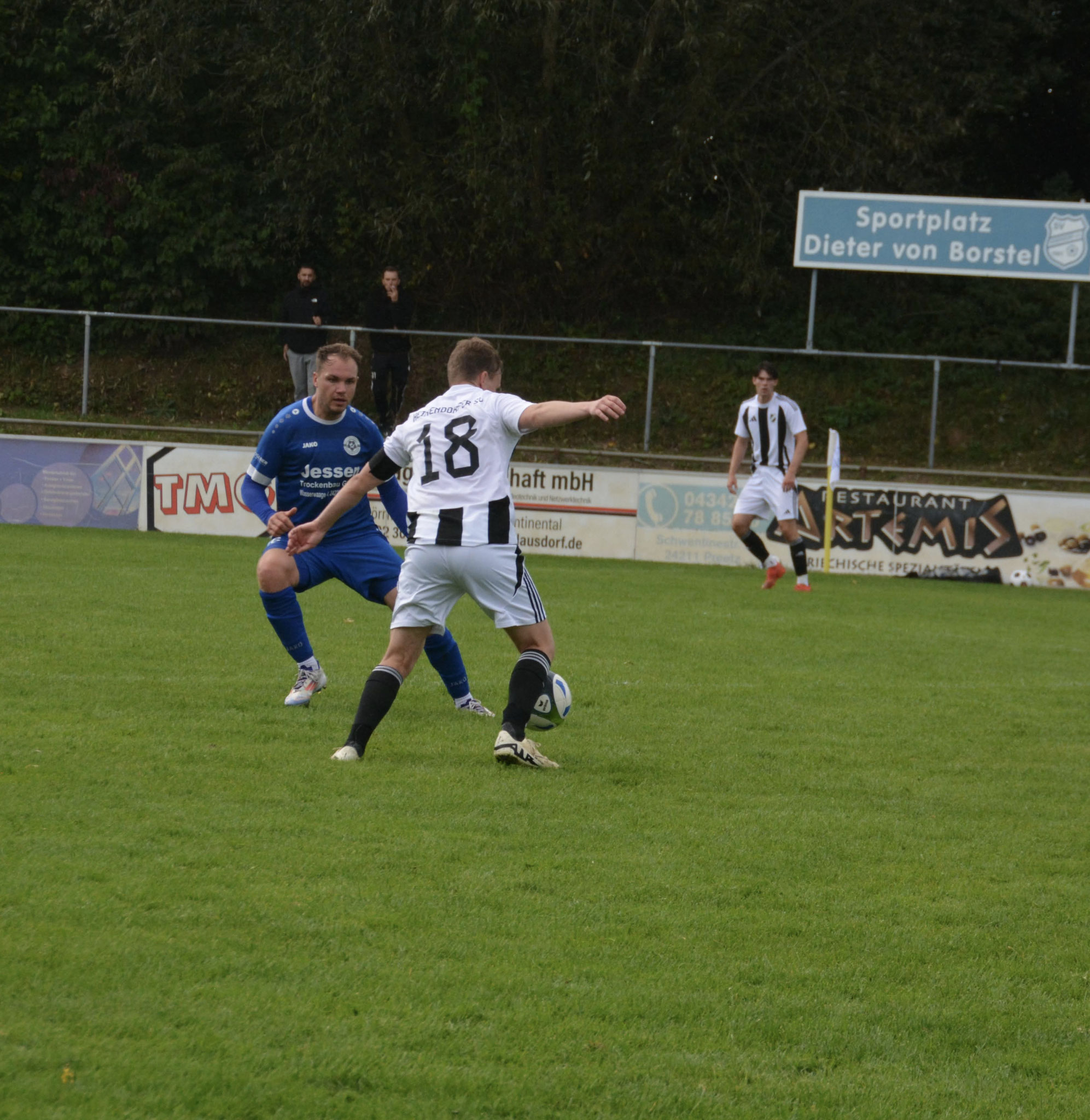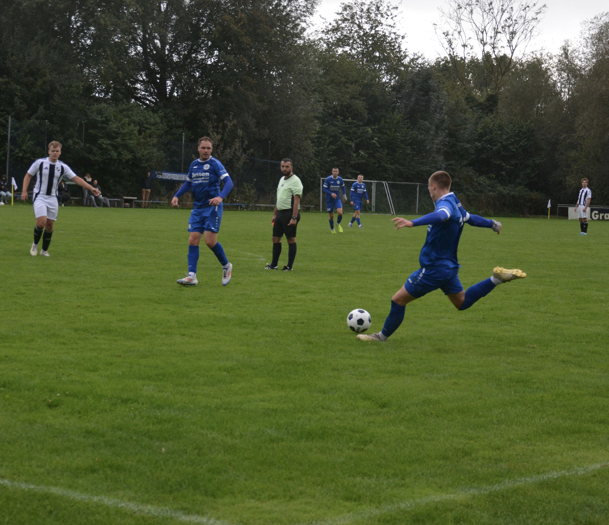 Die Gäste, die ausschließlich durch lange Bälle agierten, hatten in der ersten Halbzeit das ein oder andere Mal den Ausgleich auf dem Fuß.