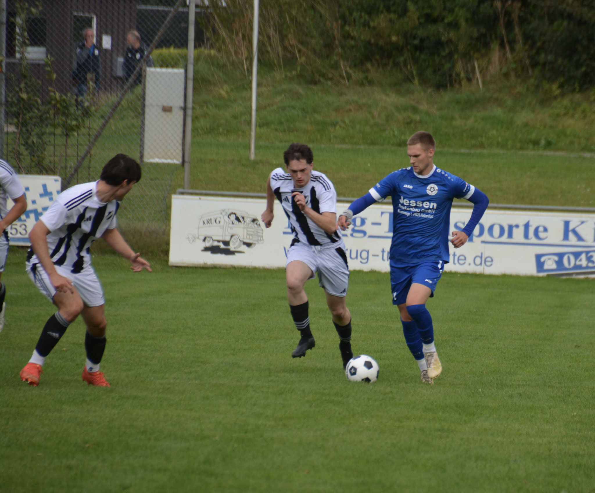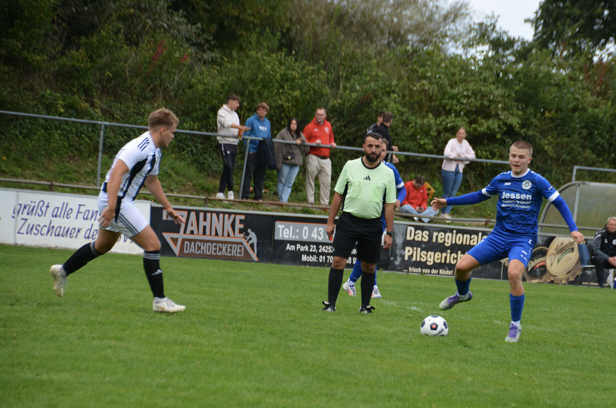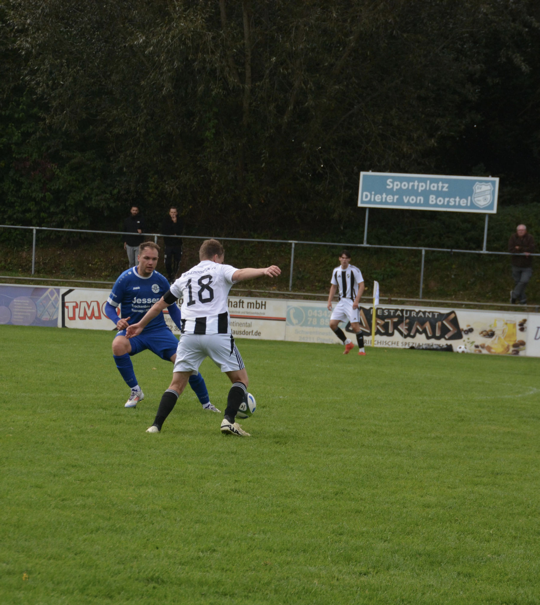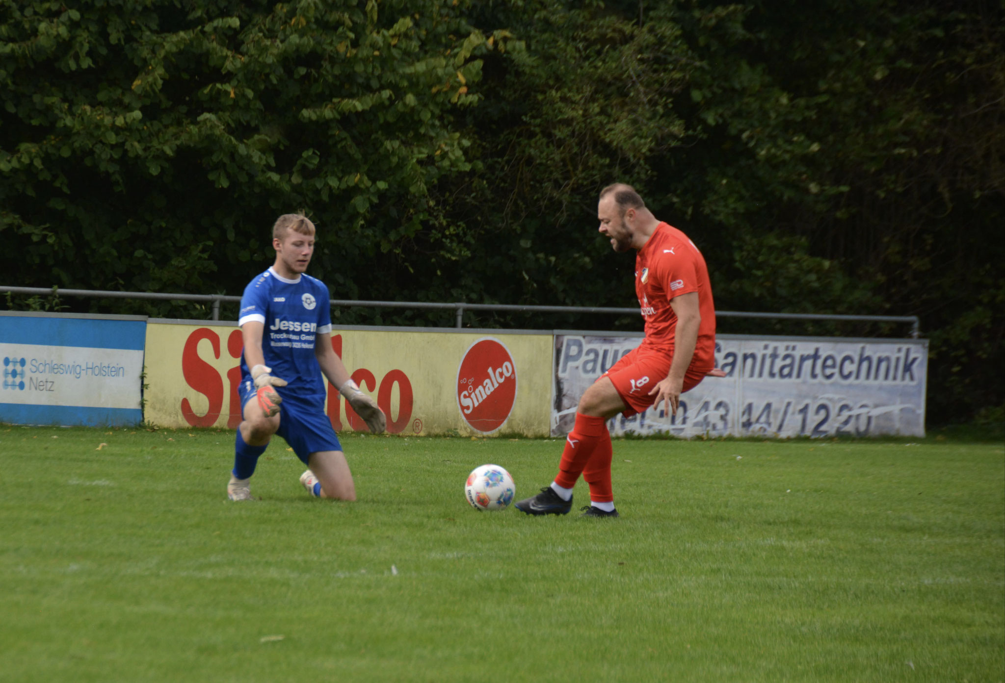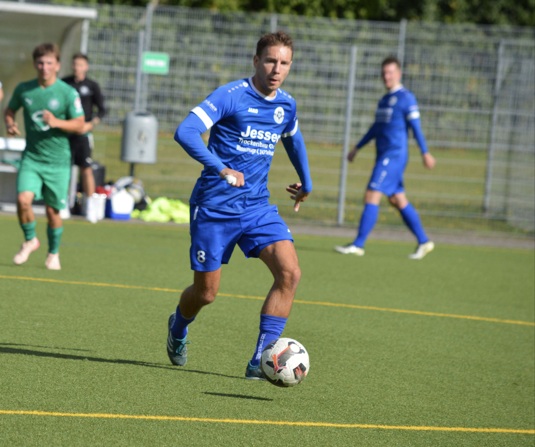 Die Gäste, die ausschließlich durch lange Bälle agierten, hatten in der ersten Halbzeit das ein oder andere Mal den Ausgleich auf dem Fuß.