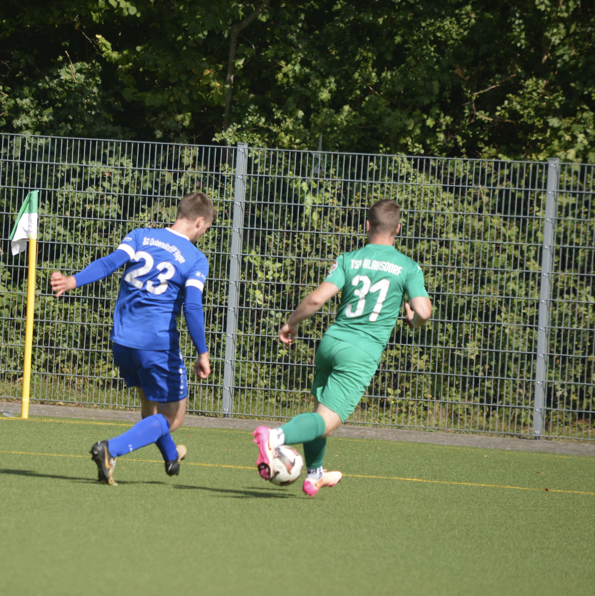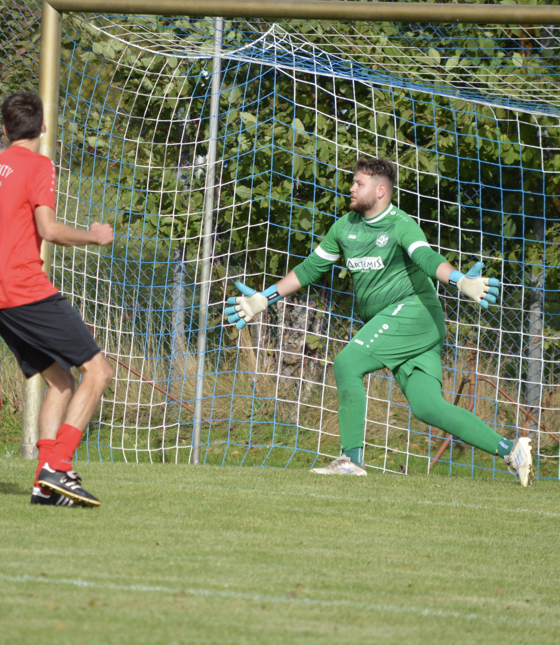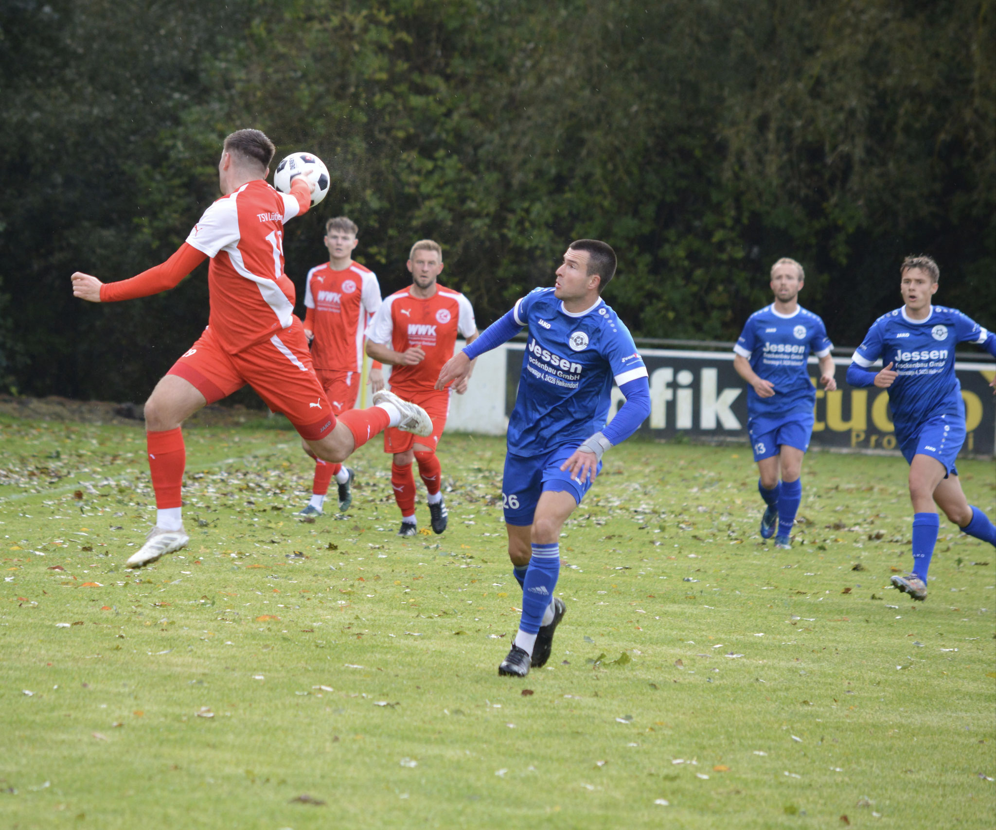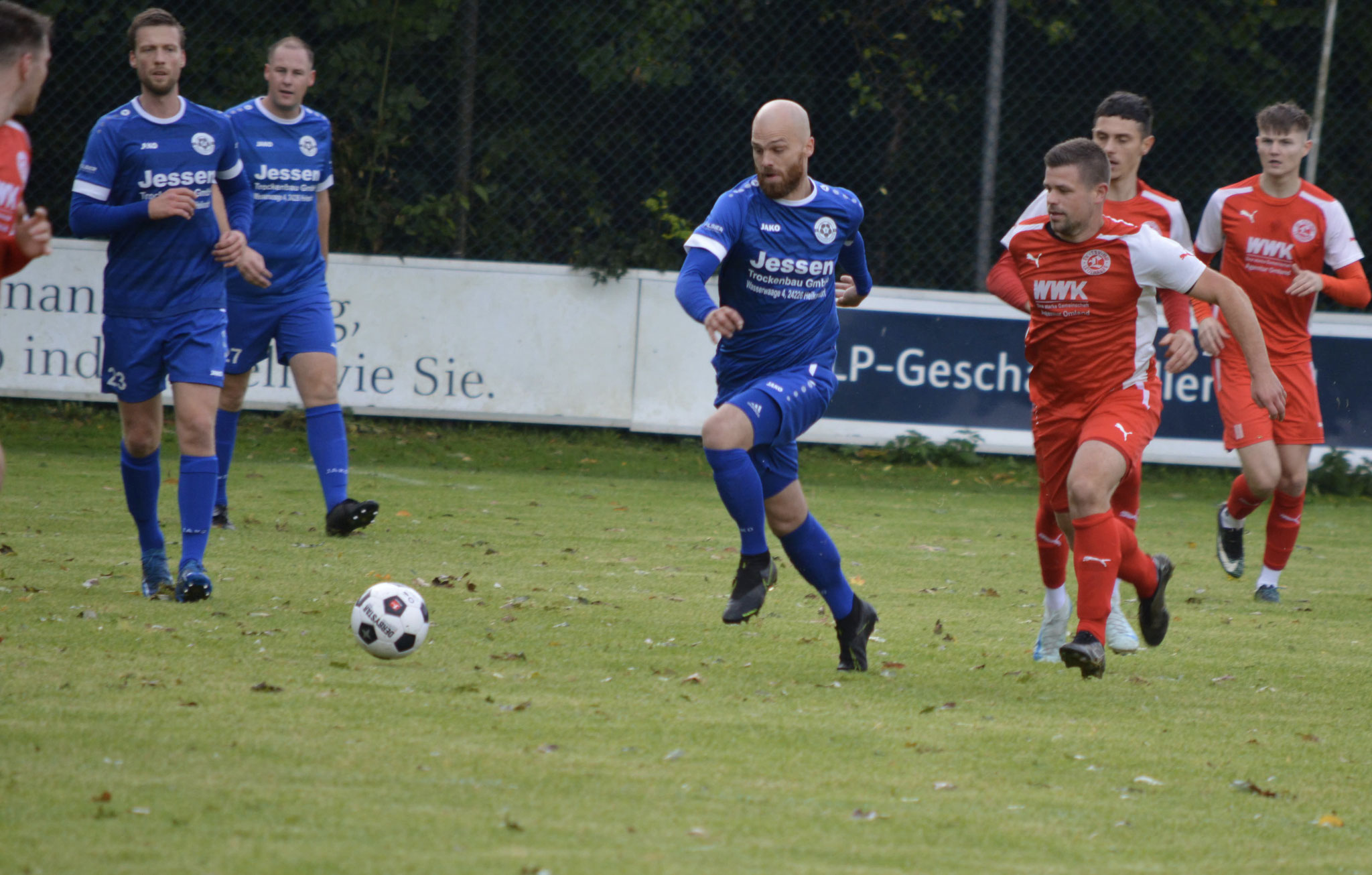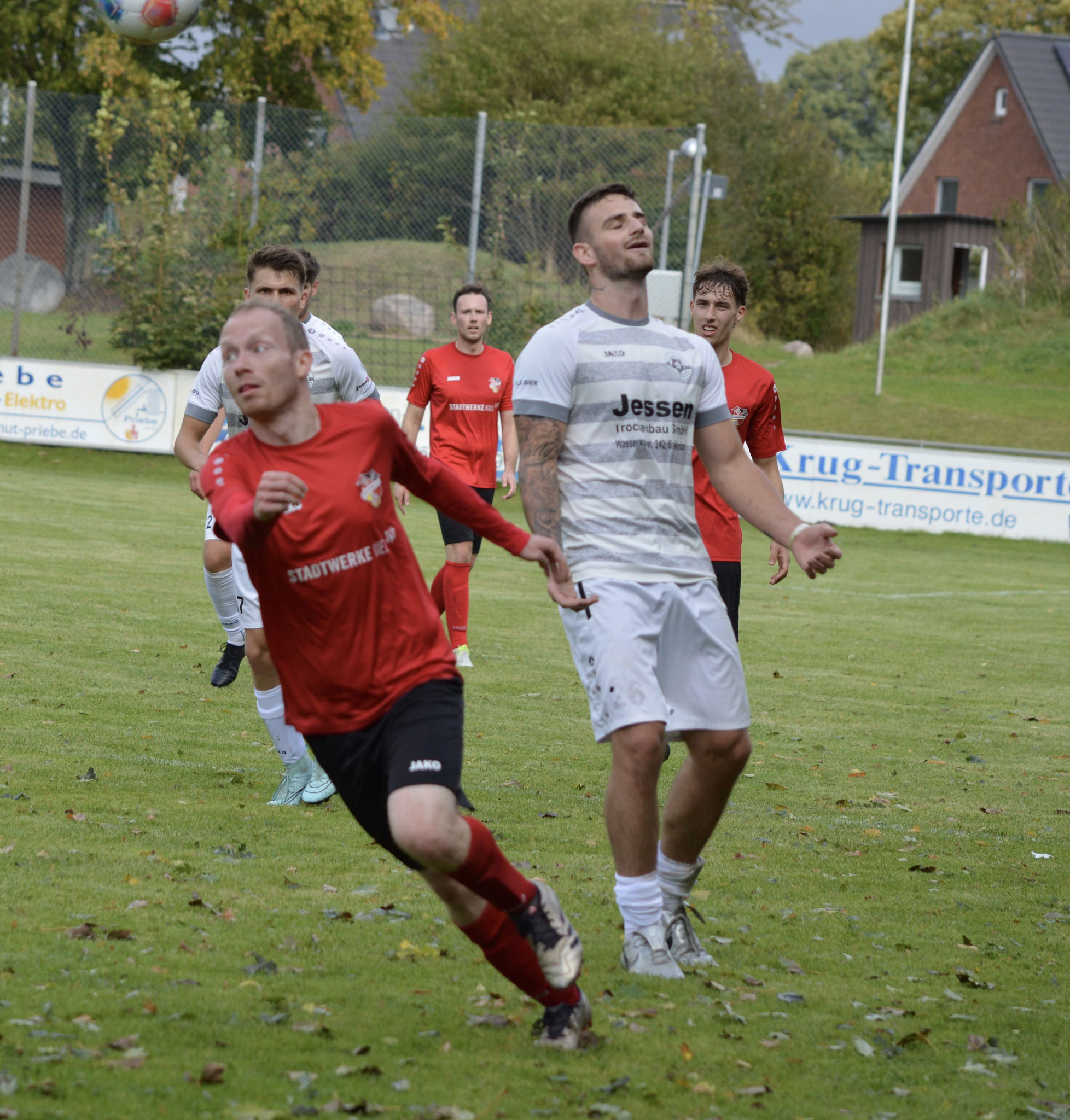 Die Gäste, die ausschließlich durch lange Bälle agierten, hatten in der ersten Halbzeit das ein oder andere Mal den Ausgleich auf dem Fuß.