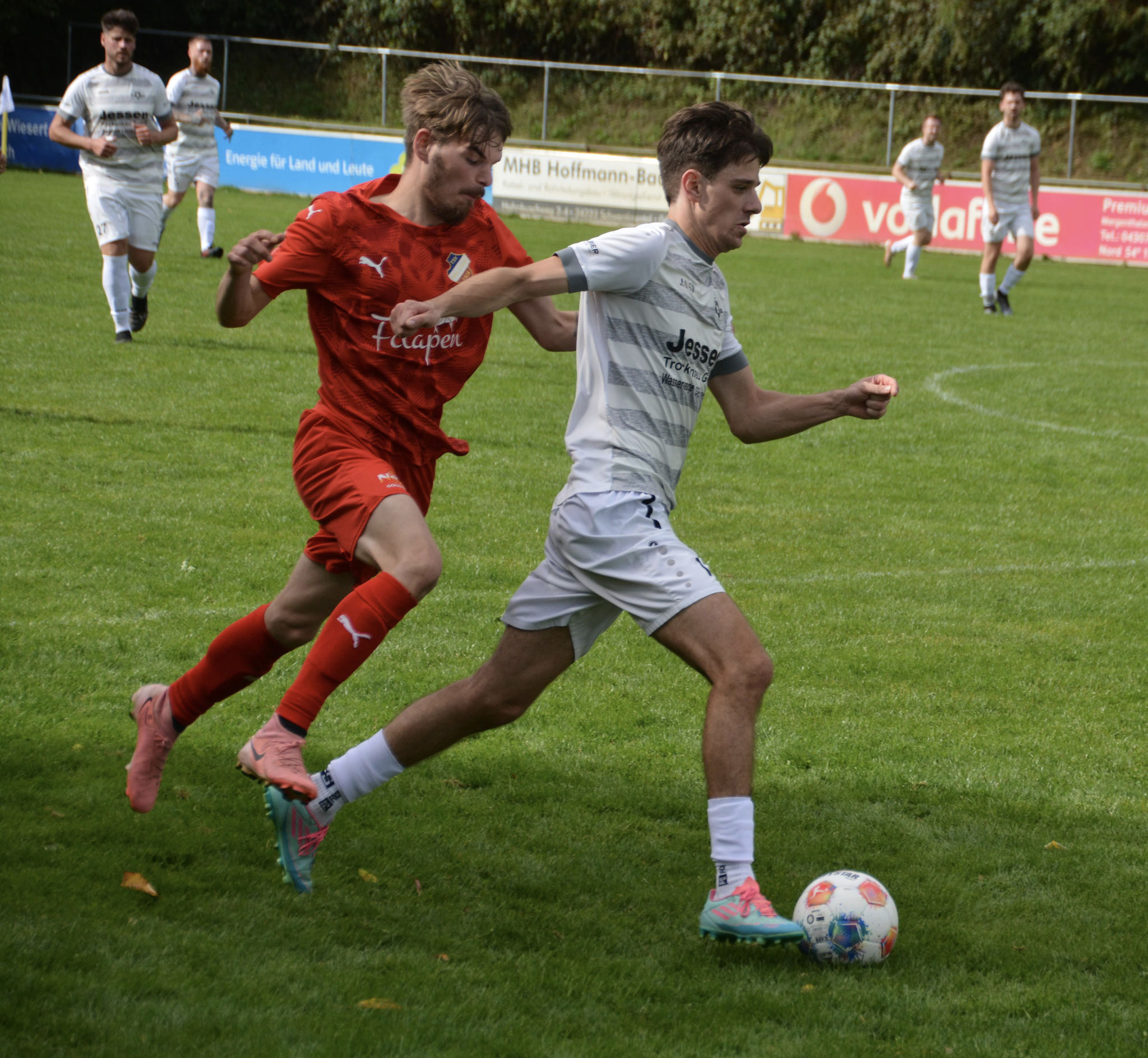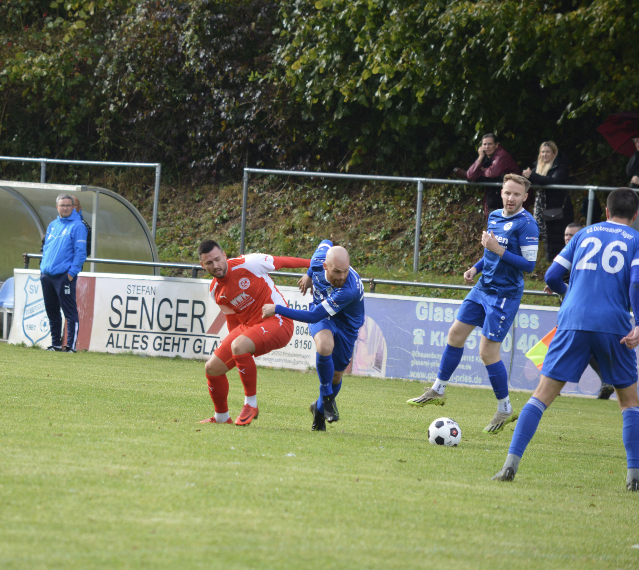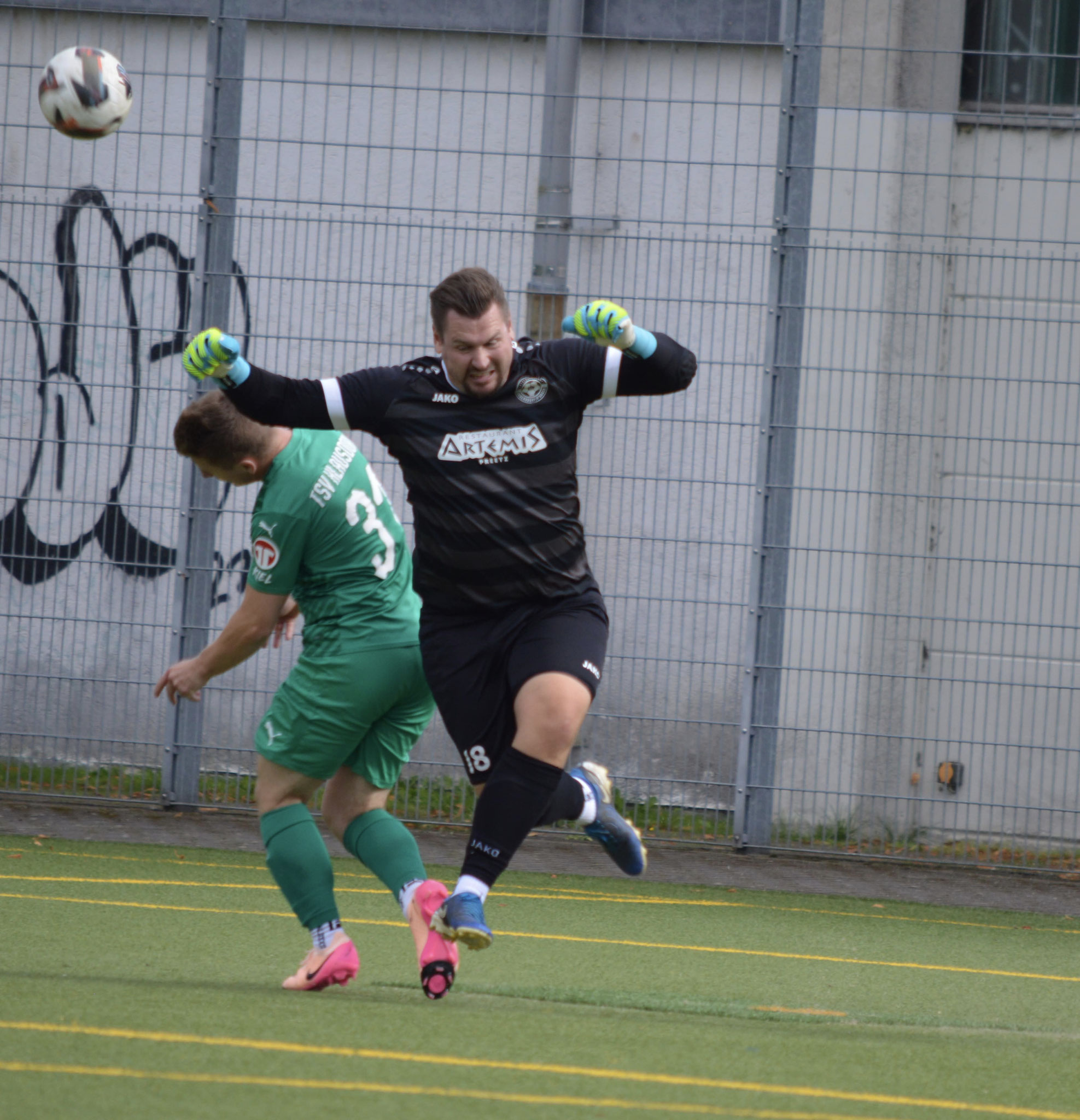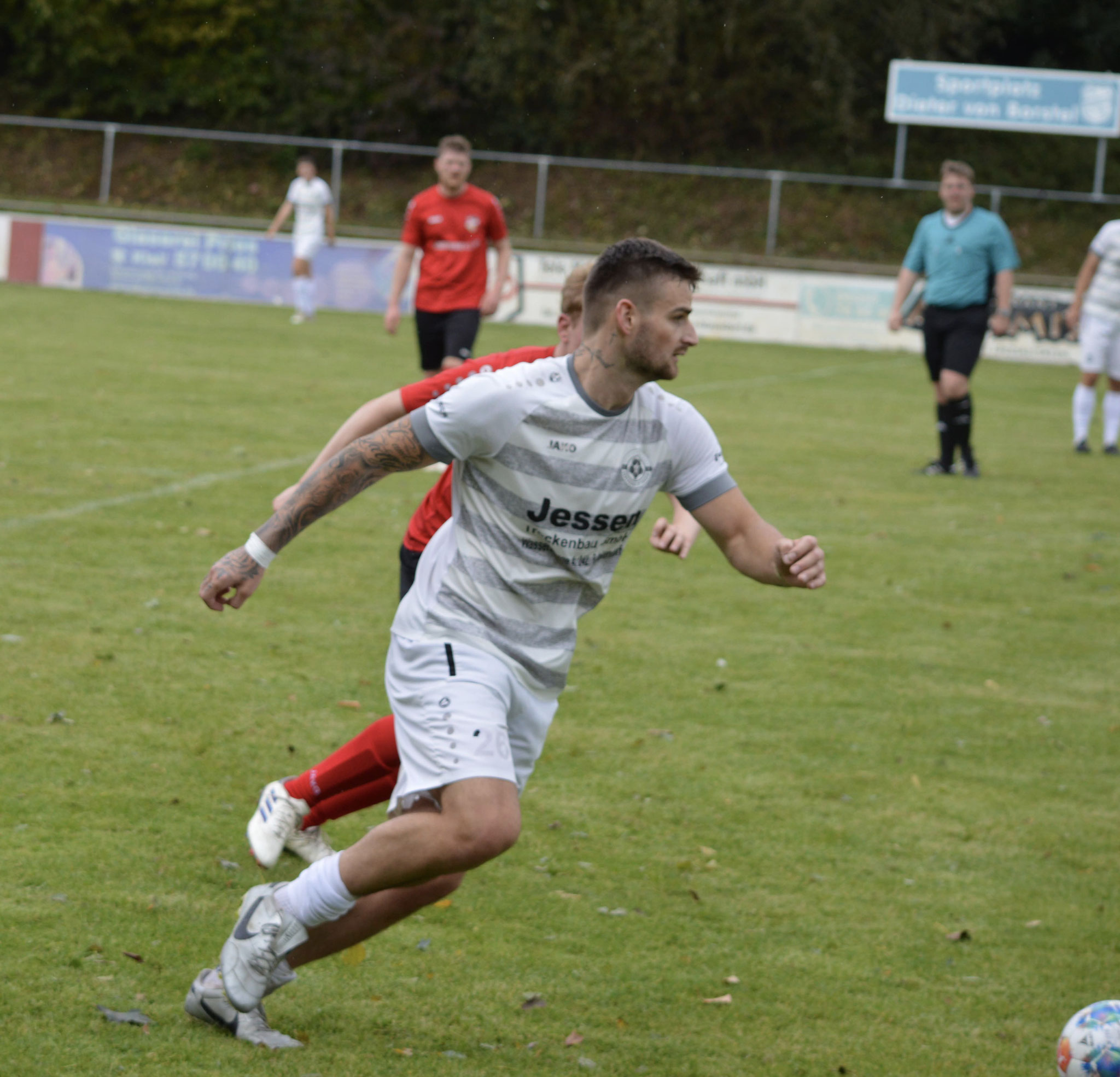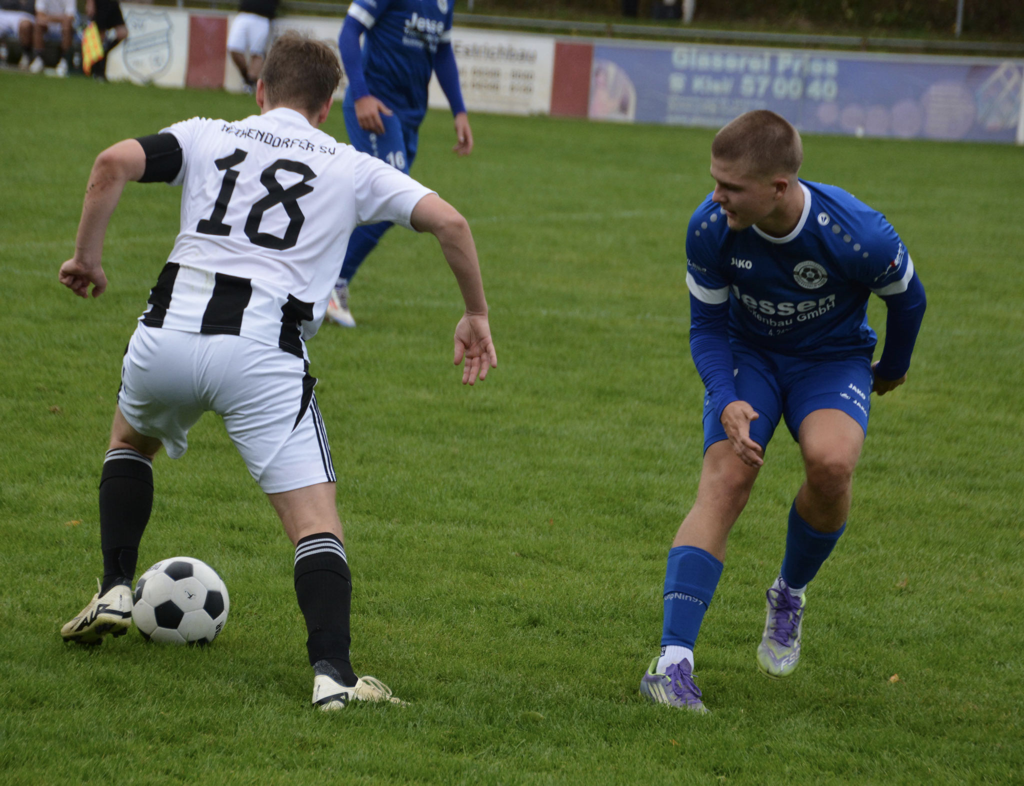 Die Gäste, die ausschließlich durch lange Bälle agierten, hatten in der ersten Halbzeit das ein oder andere Mal den Ausgleich auf dem Fuß.