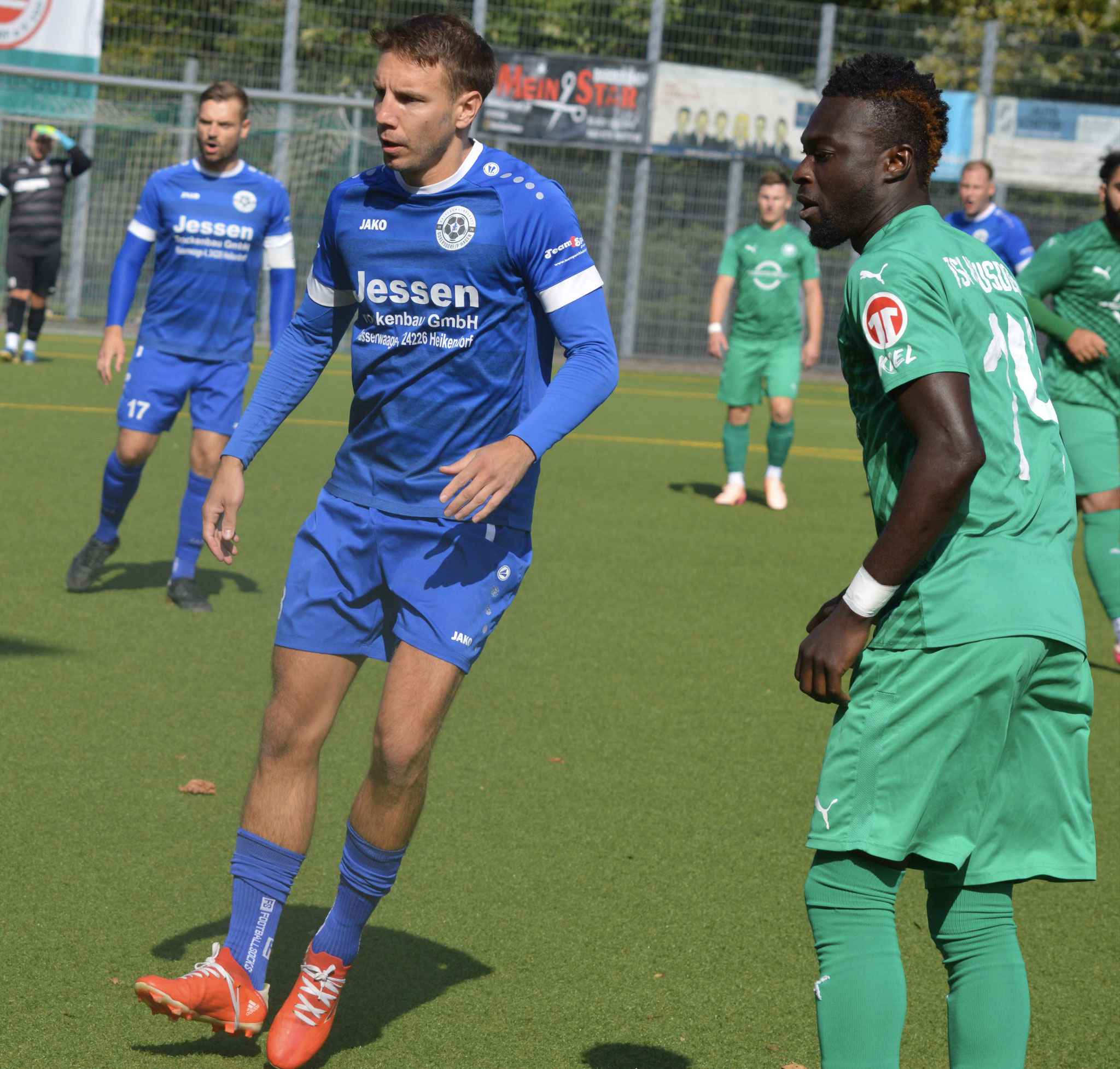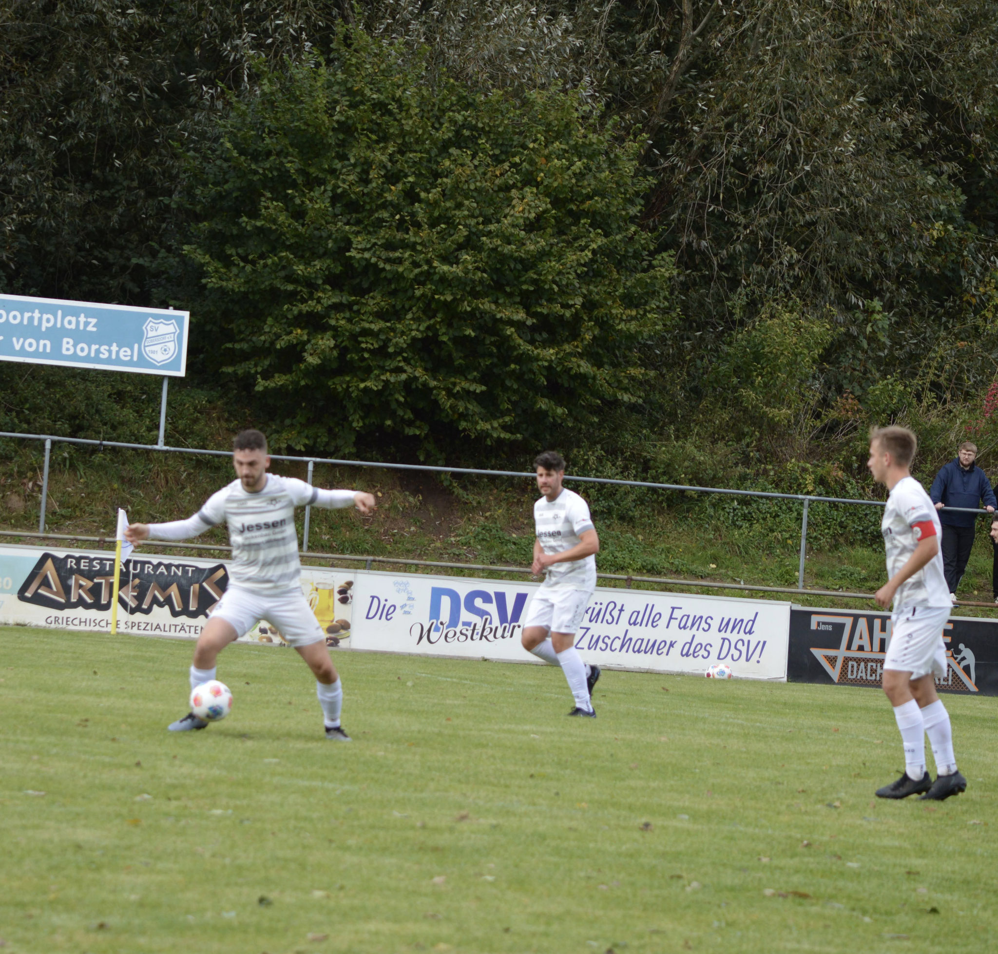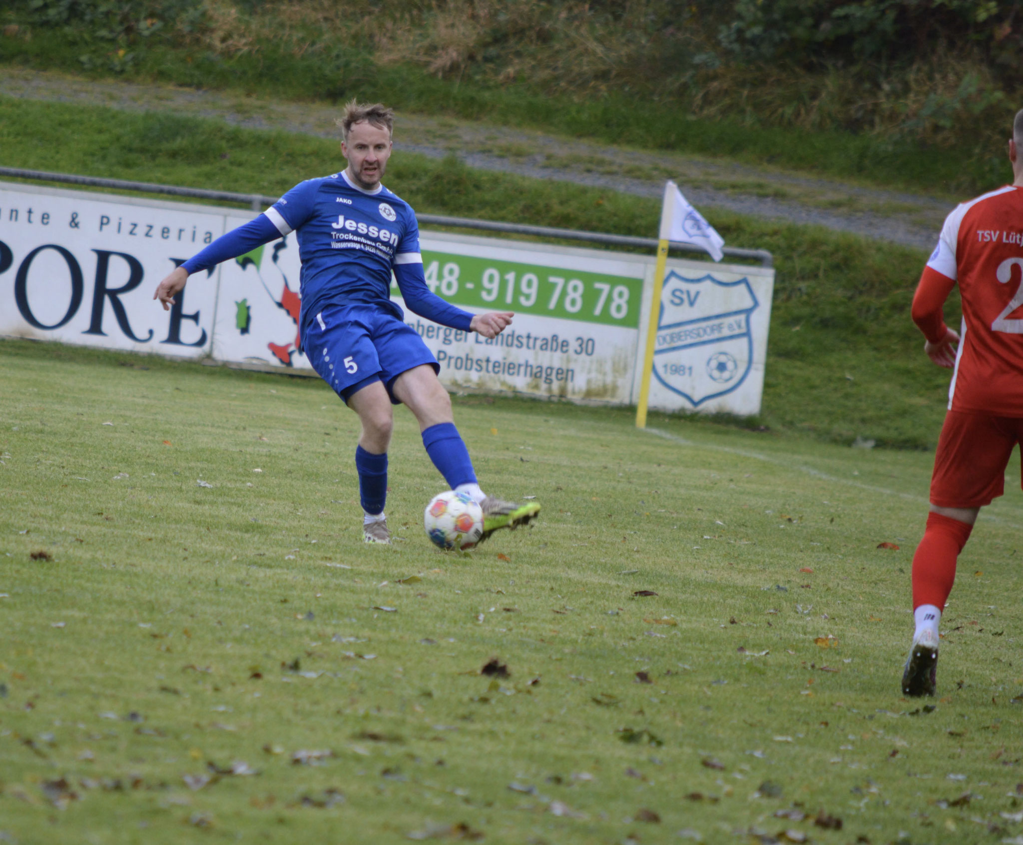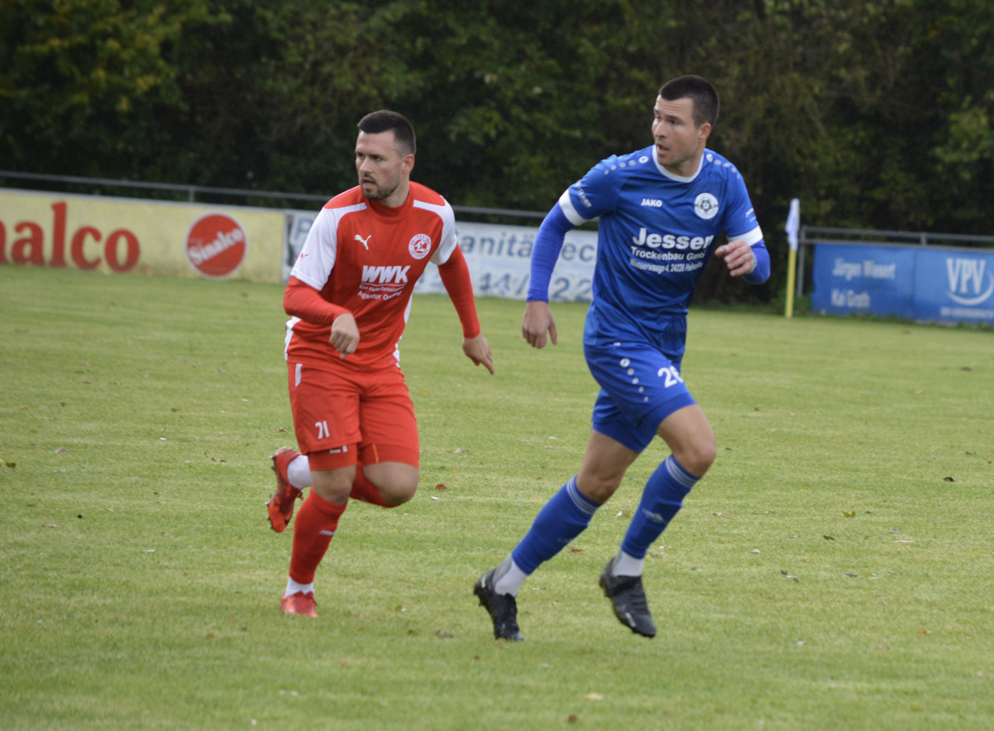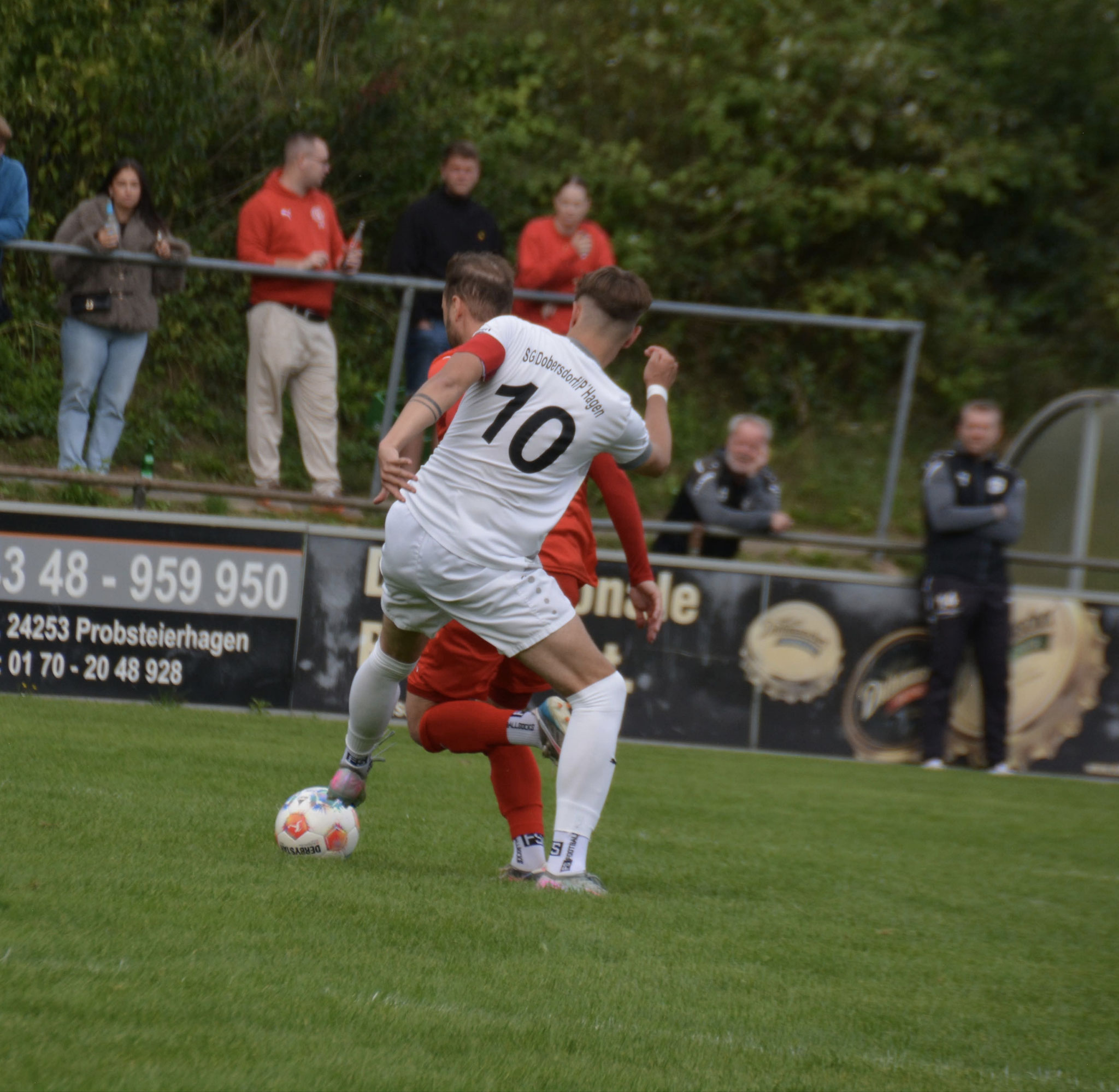 Die Gäste, die ausschließlich durch lange Bälle agierten, hatten in der ersten Halbzeit das ein oder andere Mal den Ausgleich auf dem Fuß.