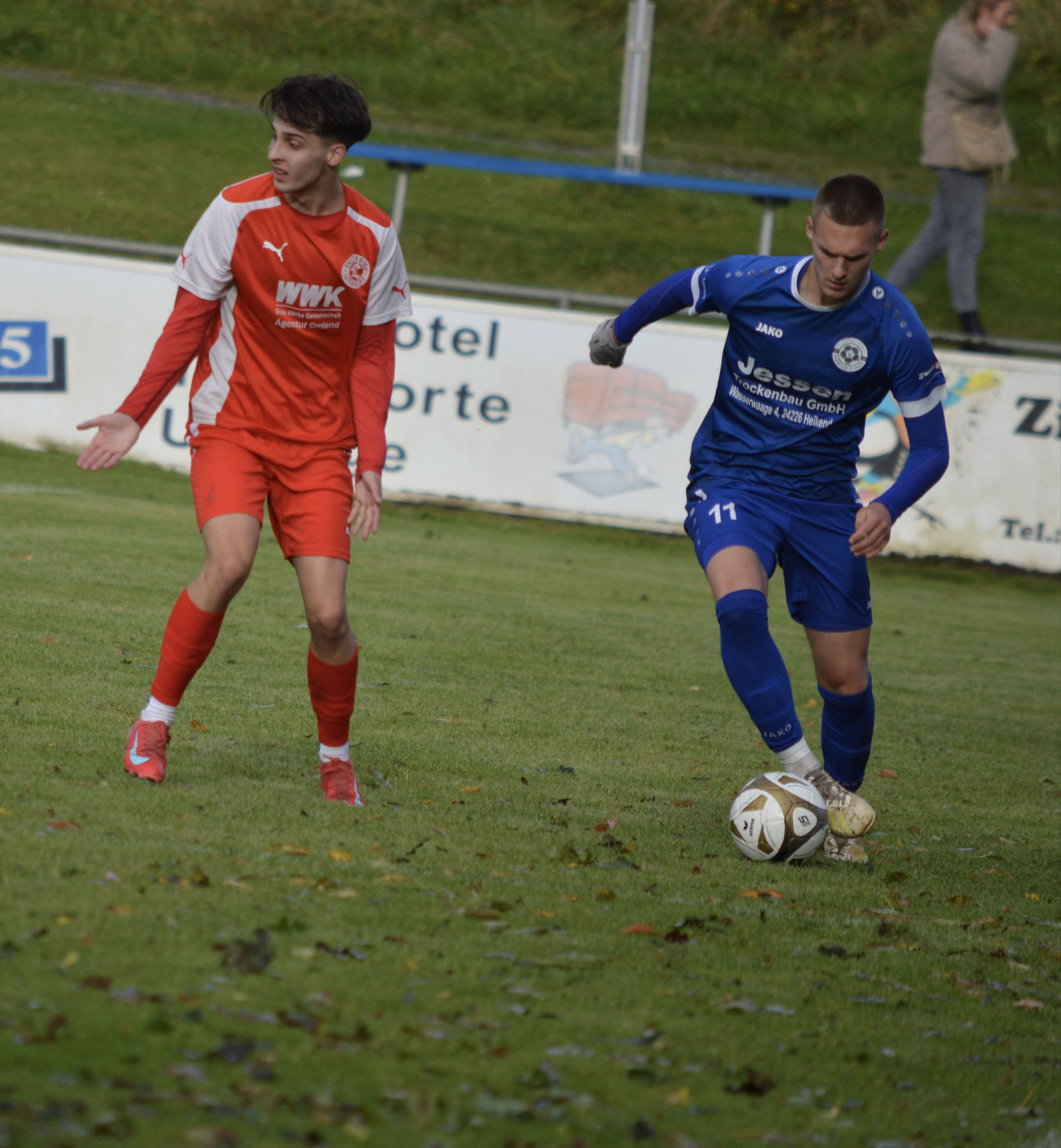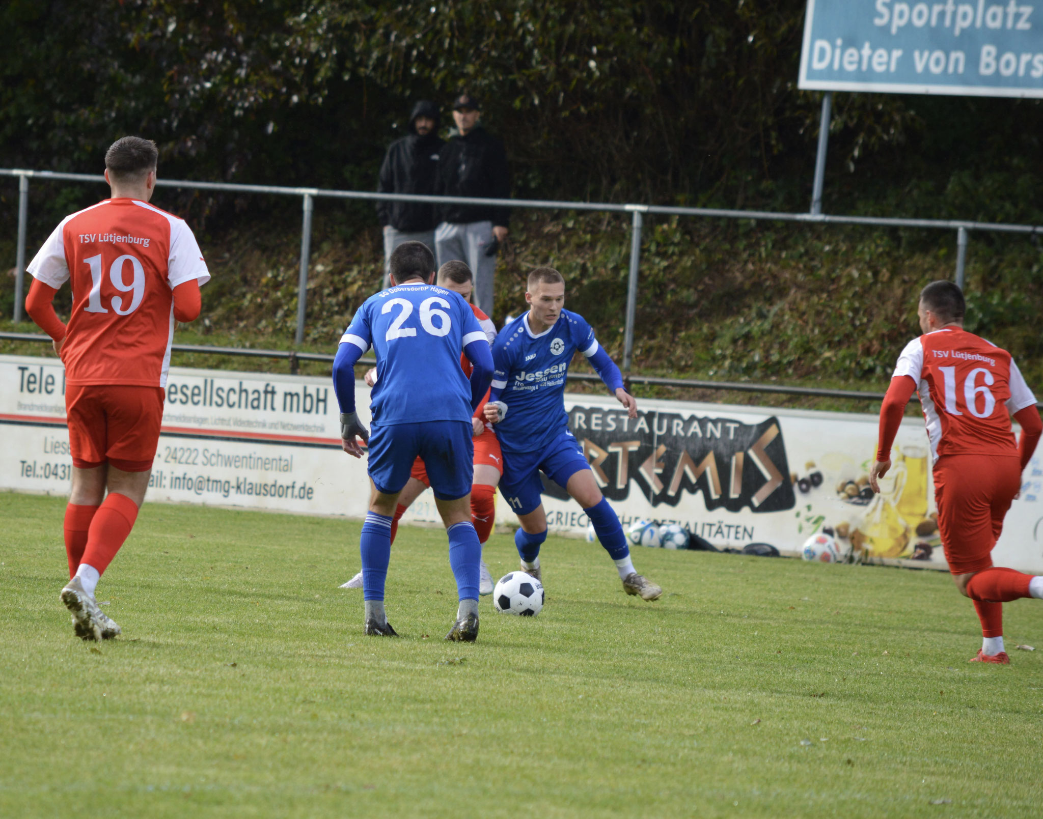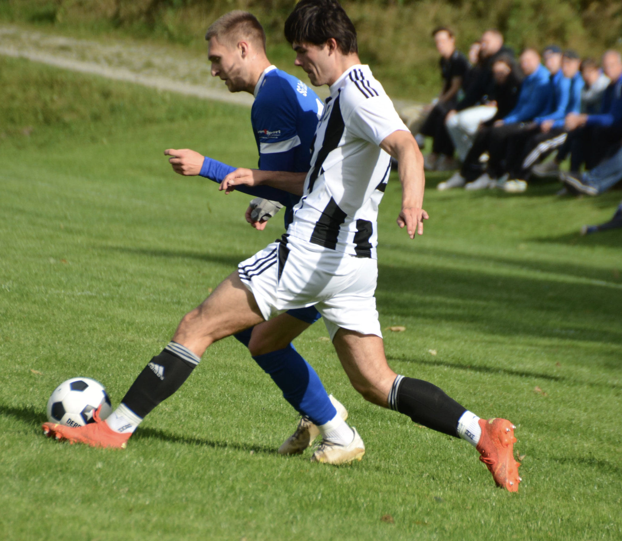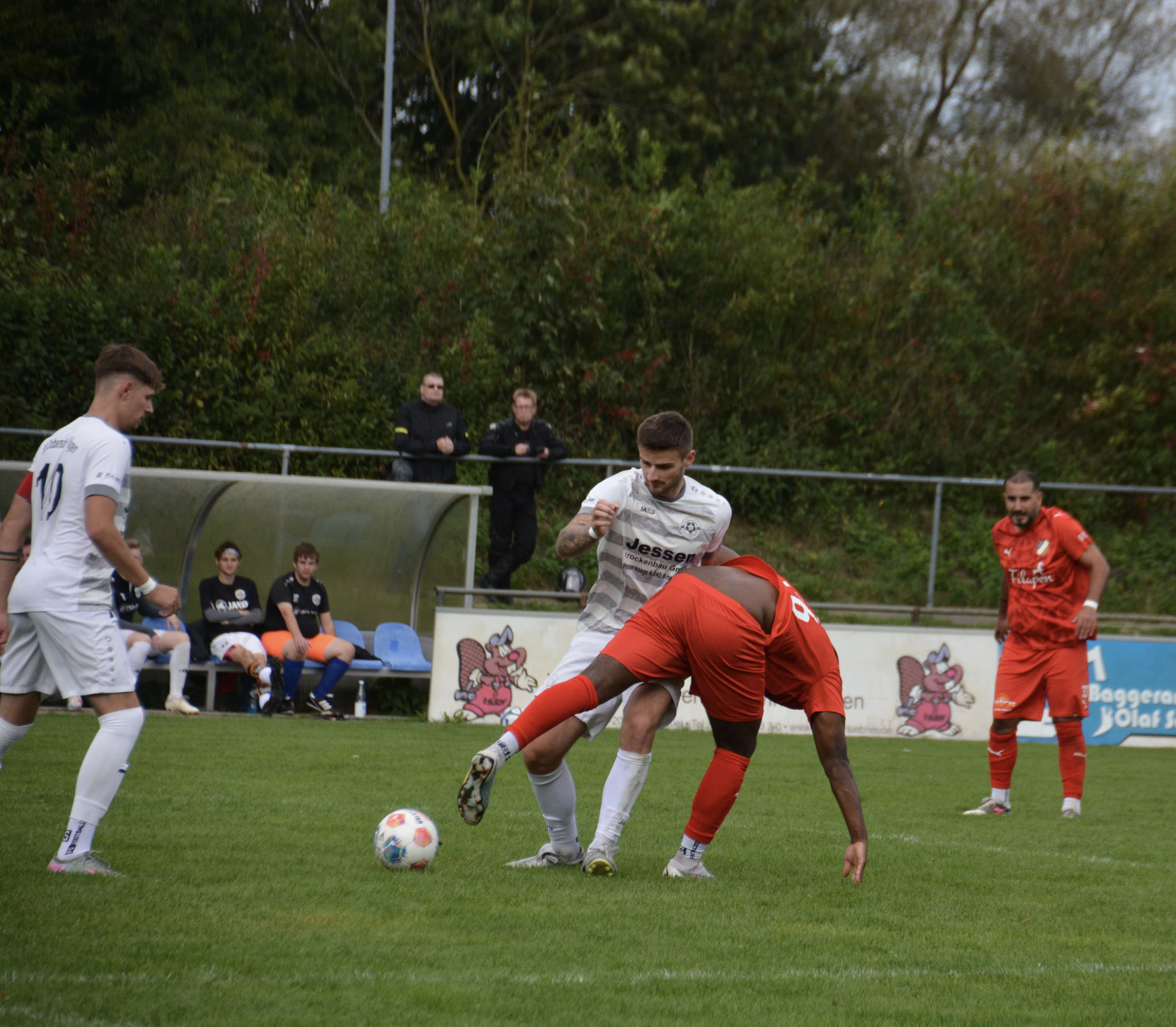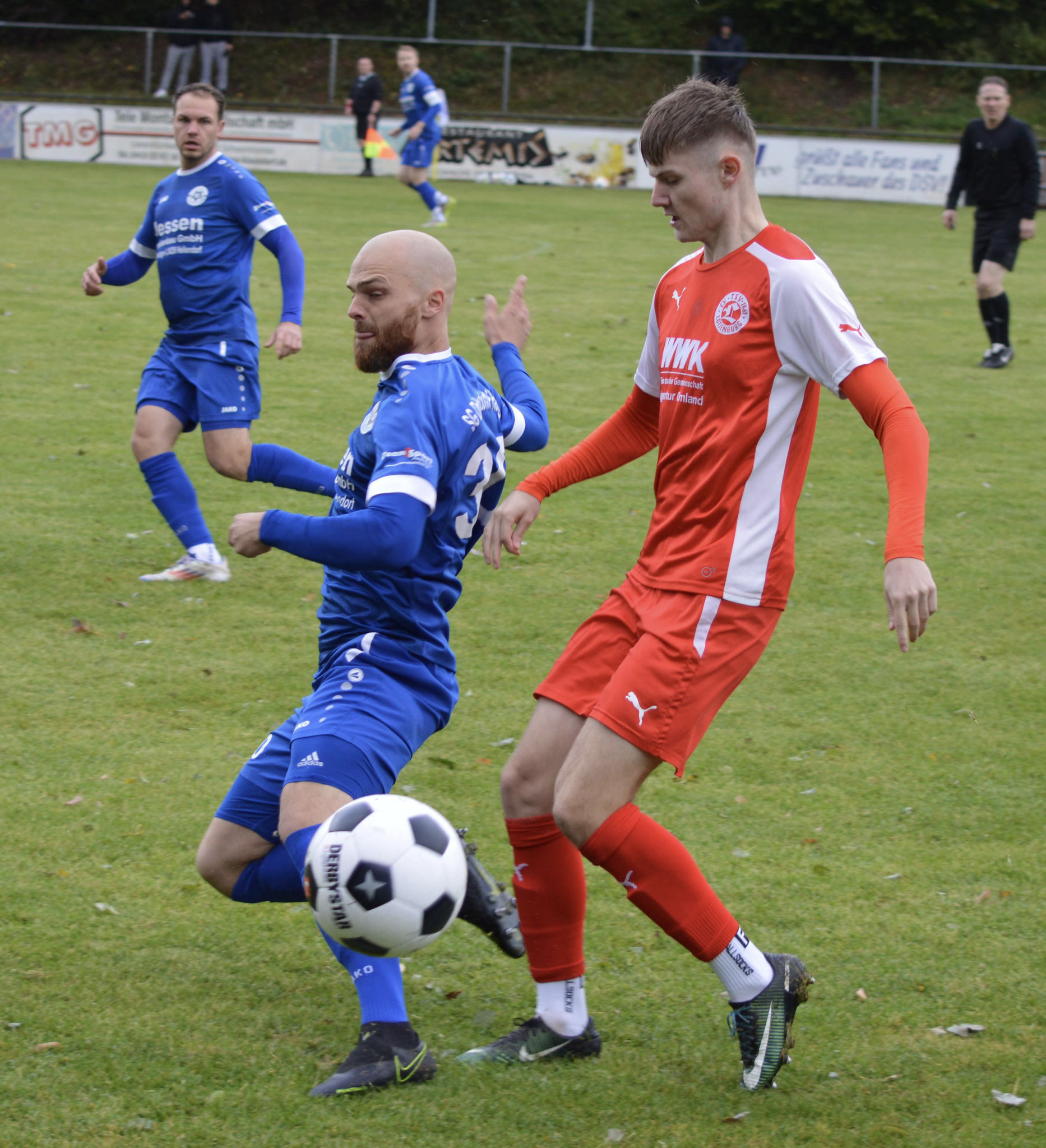 Die Gäste, die ausschließlich durch lange Bälle agierten, hatten in der ersten Halbzeit das ein oder andere Mal den Ausgleich auf dem Fuß.