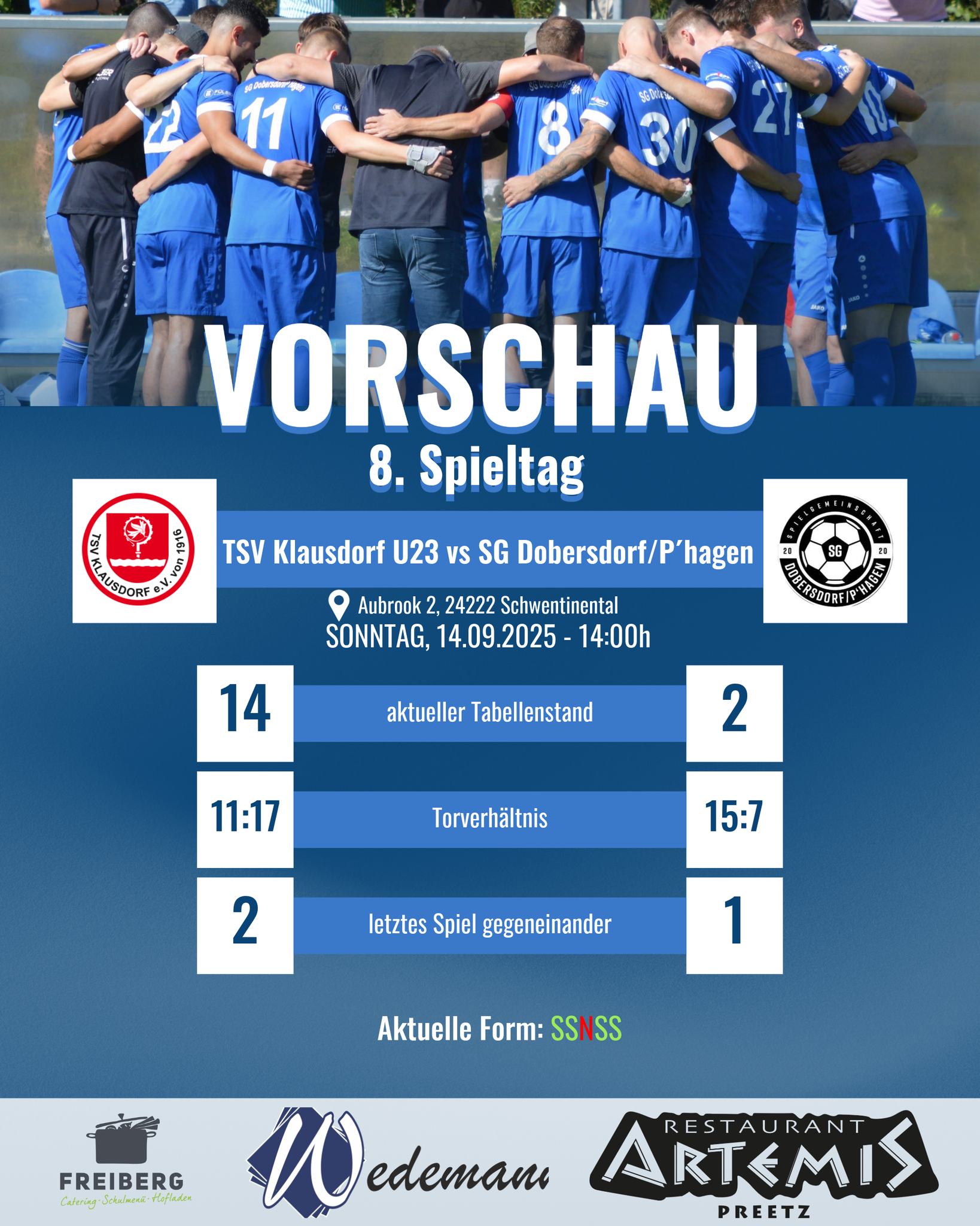 Wir gewinnen das spannende Auswärtsspiel gegen die Zweitvertretung vom TSV Klausdorf mit 4:2 🚀